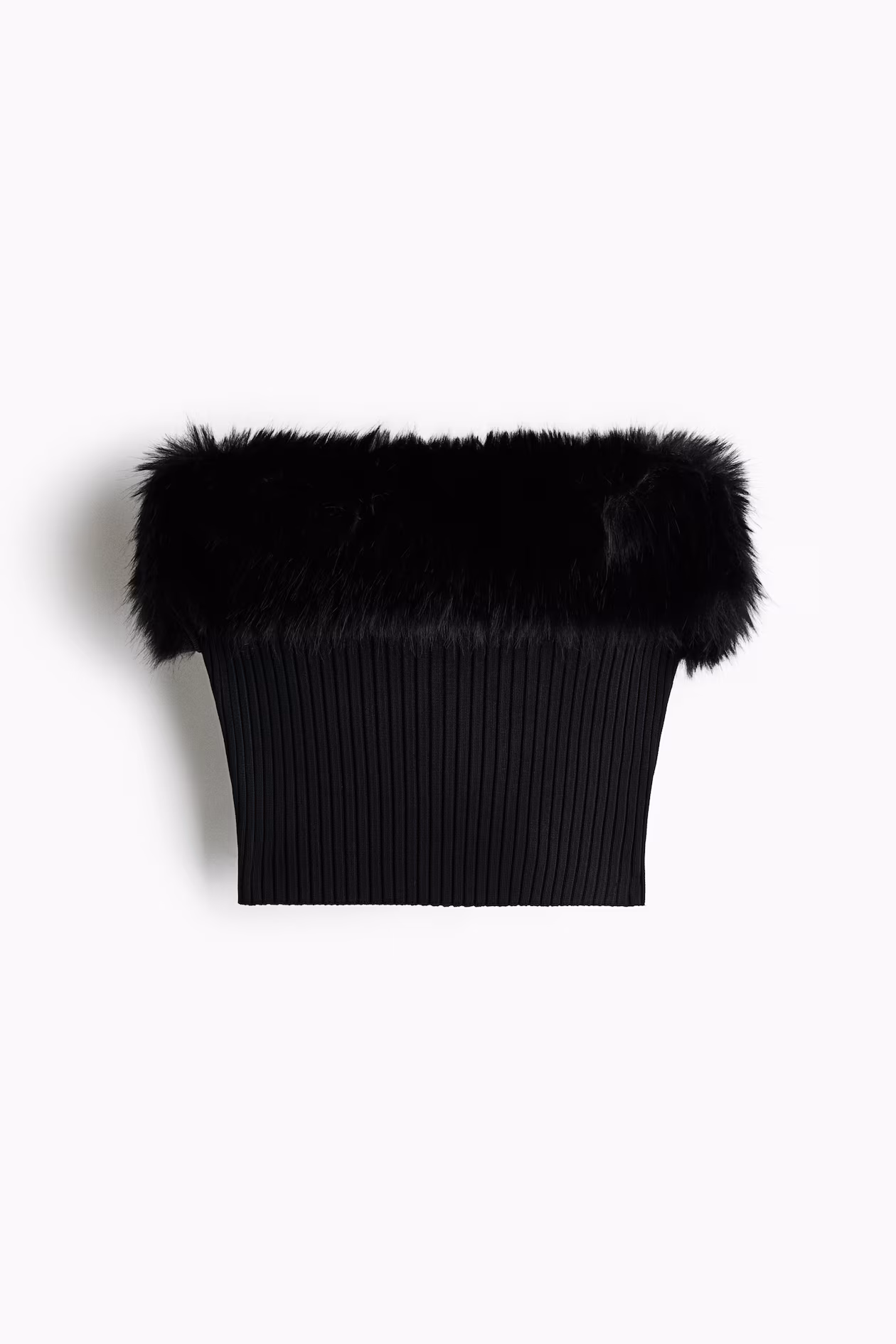 Short tube top in a soft rib knit with a border at front in fluffy fabric. Silicone trim inside upper edge.