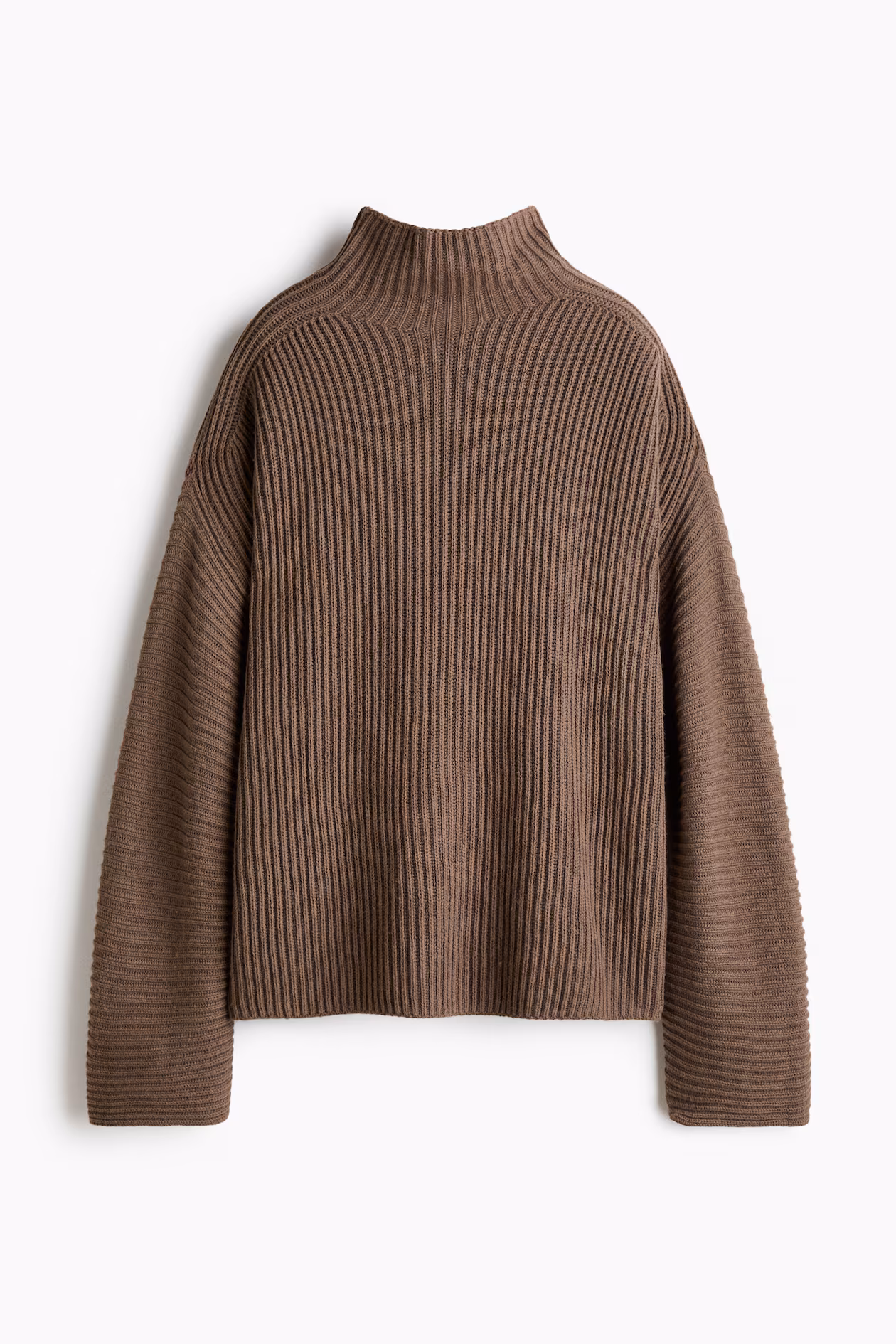 Loose-fit, rib-knit sweater in a soft wool and cotton blend. Mock turtleneck, dropped shoulders, and long sleeves.