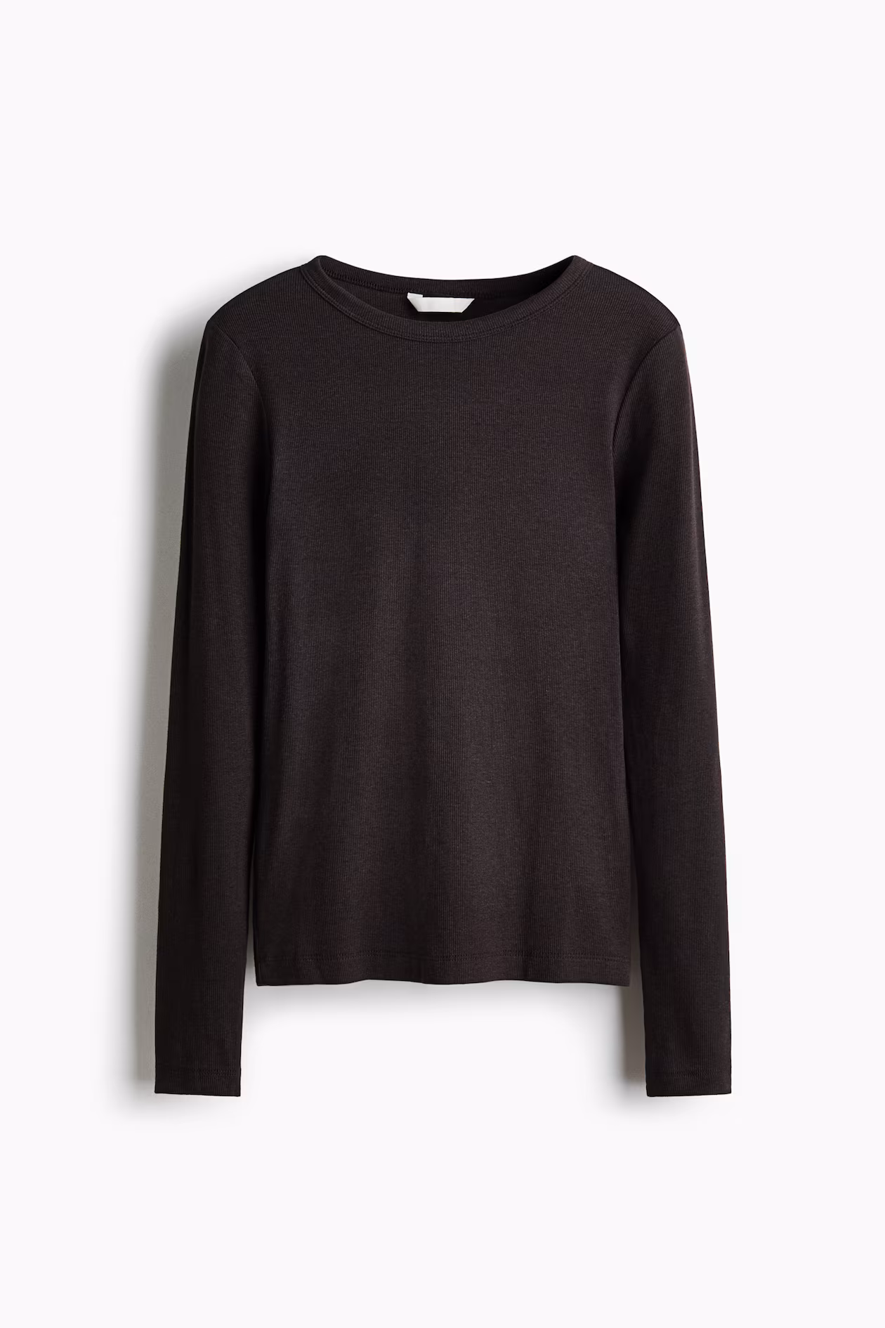 Fitted top in soft, ribbed jersey made from a cotton and viscose blend. Round neckline and long sleeves.