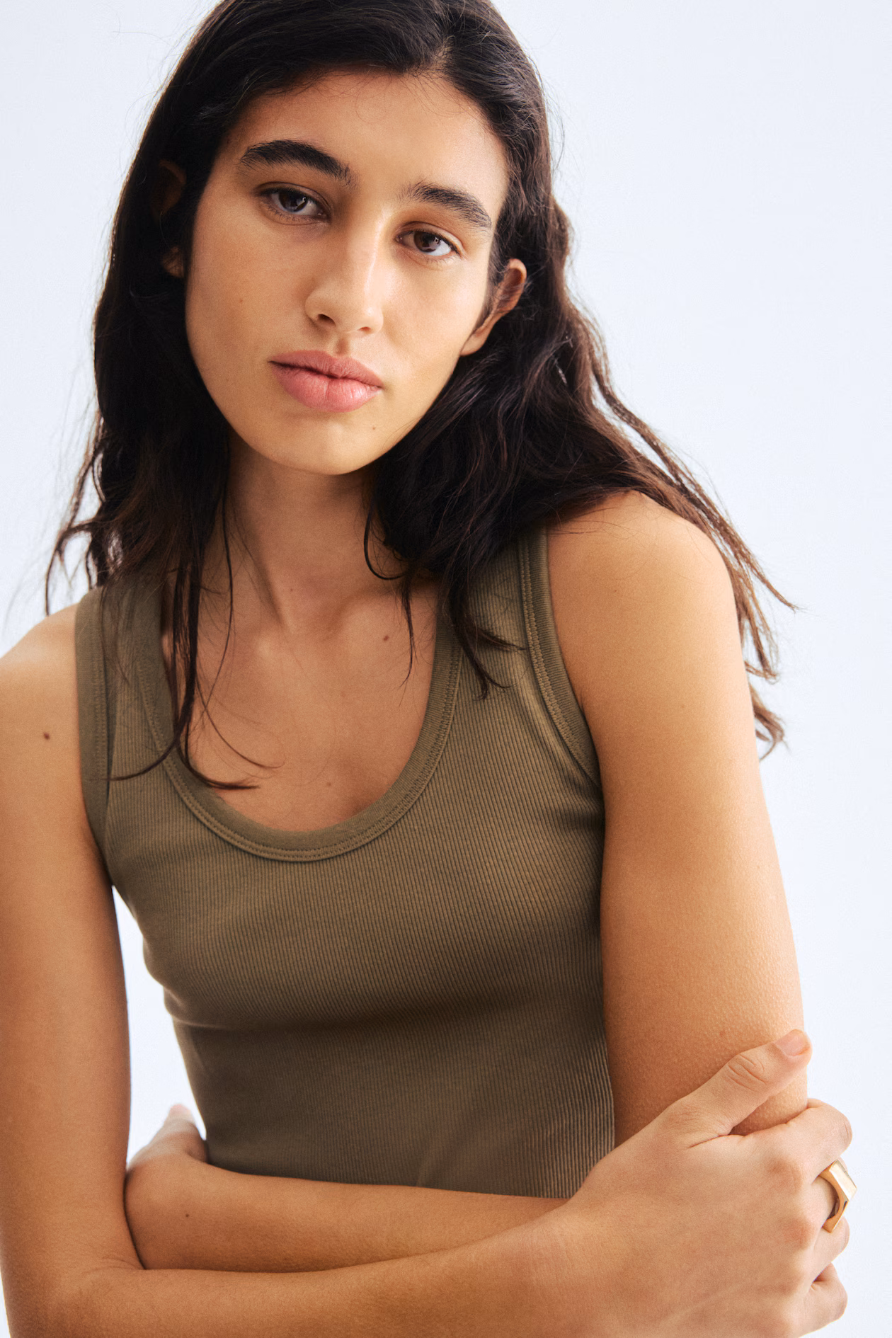 Fitted tank top in ribbed cotton jersey. Scoop neck and a straight-cut hem.