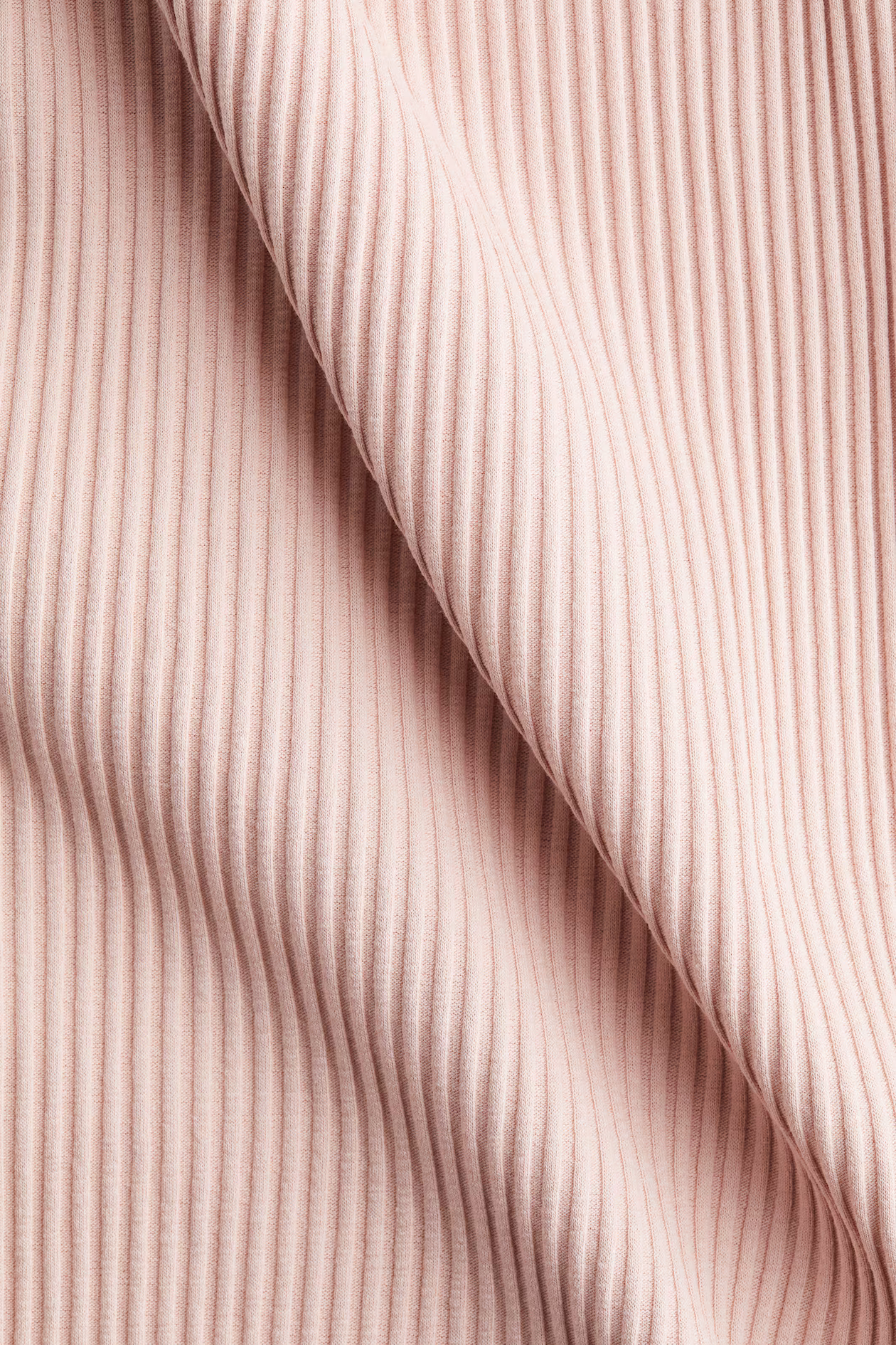 Short dress in ribbed cotton jersey with a fitted bodice and gently flared skirt. Square neckline with narrow trim and a small, decorative satin bow at front. Long trumpet sleeves, overlocked edges at cuffs and hem, and accent-colored trim.