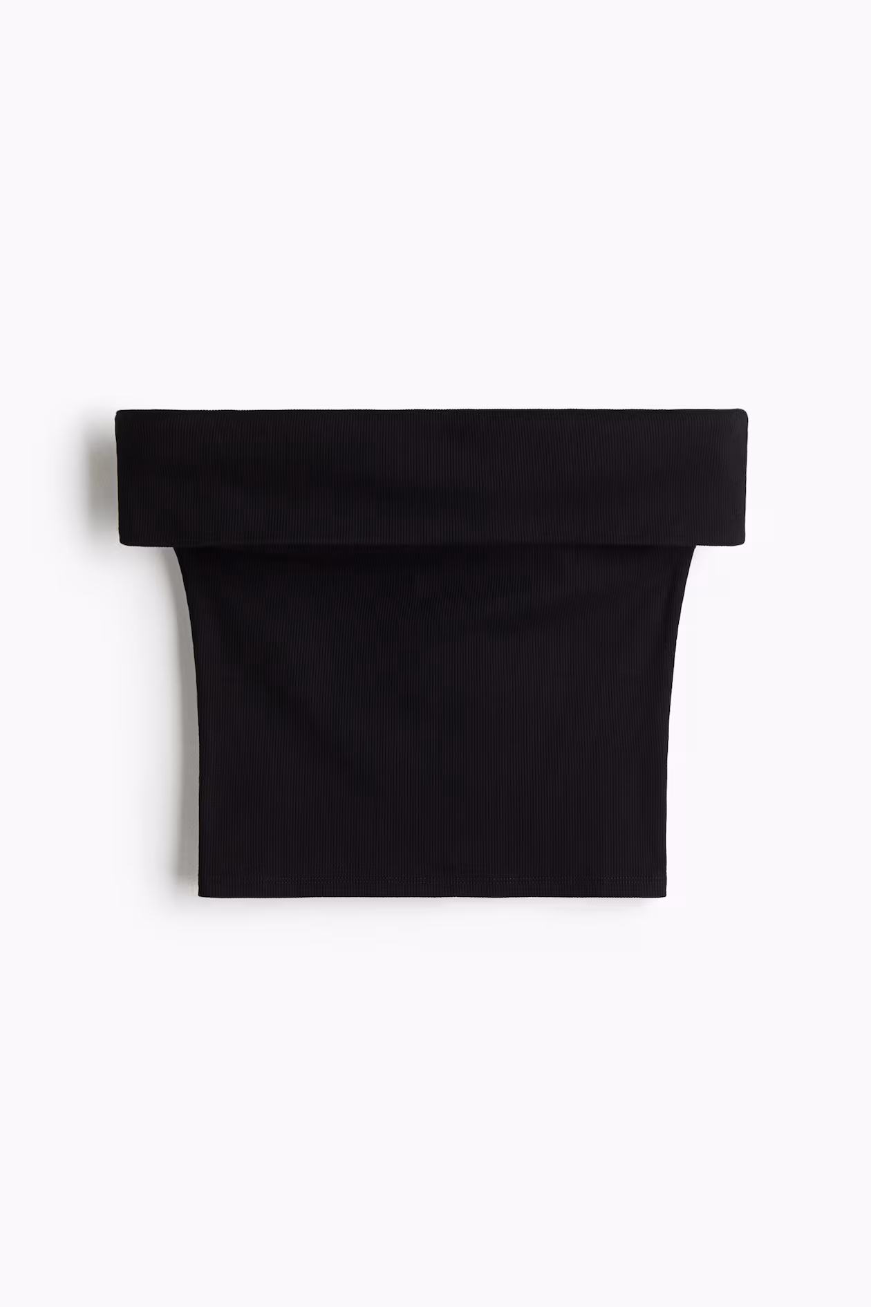 Short, fitted, off-the-shoulder top in ribbed cotton jersey. Wide, foldover upper edge.