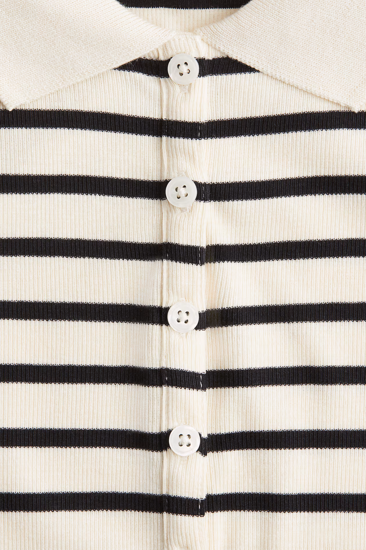 Fitted polo shirt in ribbed jersey. Collar, button placket, and short sleeves finishing just above elbows.