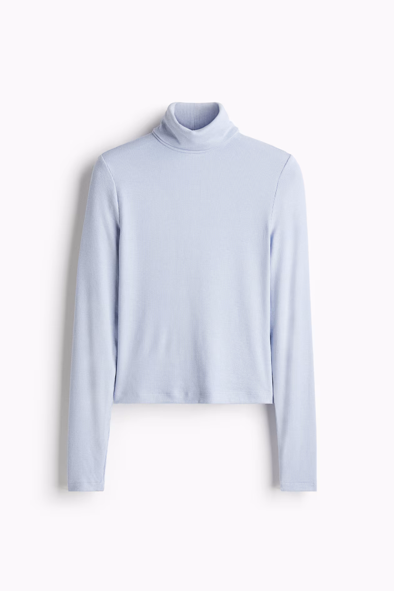 Fitted shirt in ribbed viscose jersey with a turtleneck and long sleeves.