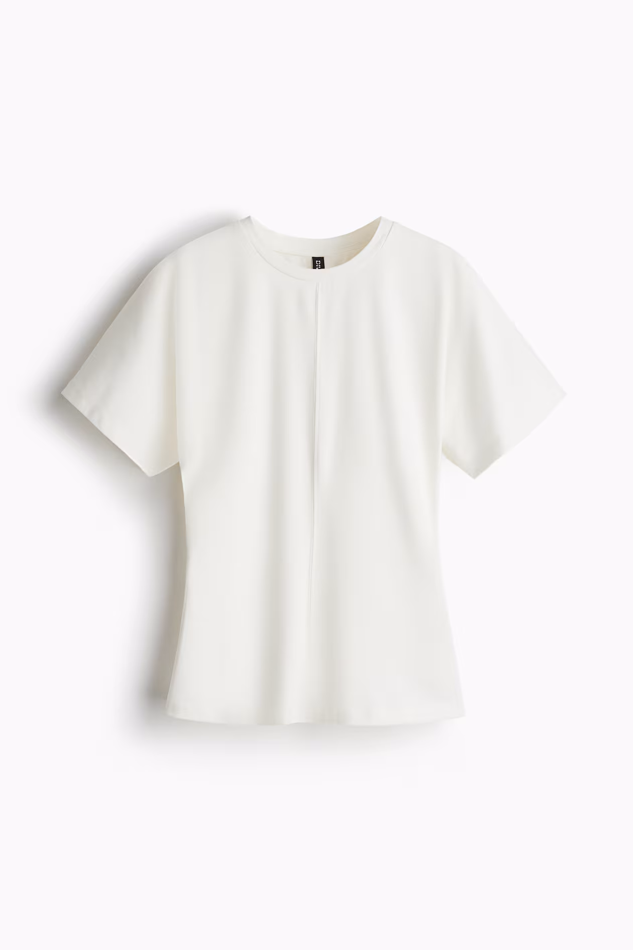 Fitted T-shirt in cotton jersey with narrow trim at neckline. Ruching at sides for a gently draped effect.
