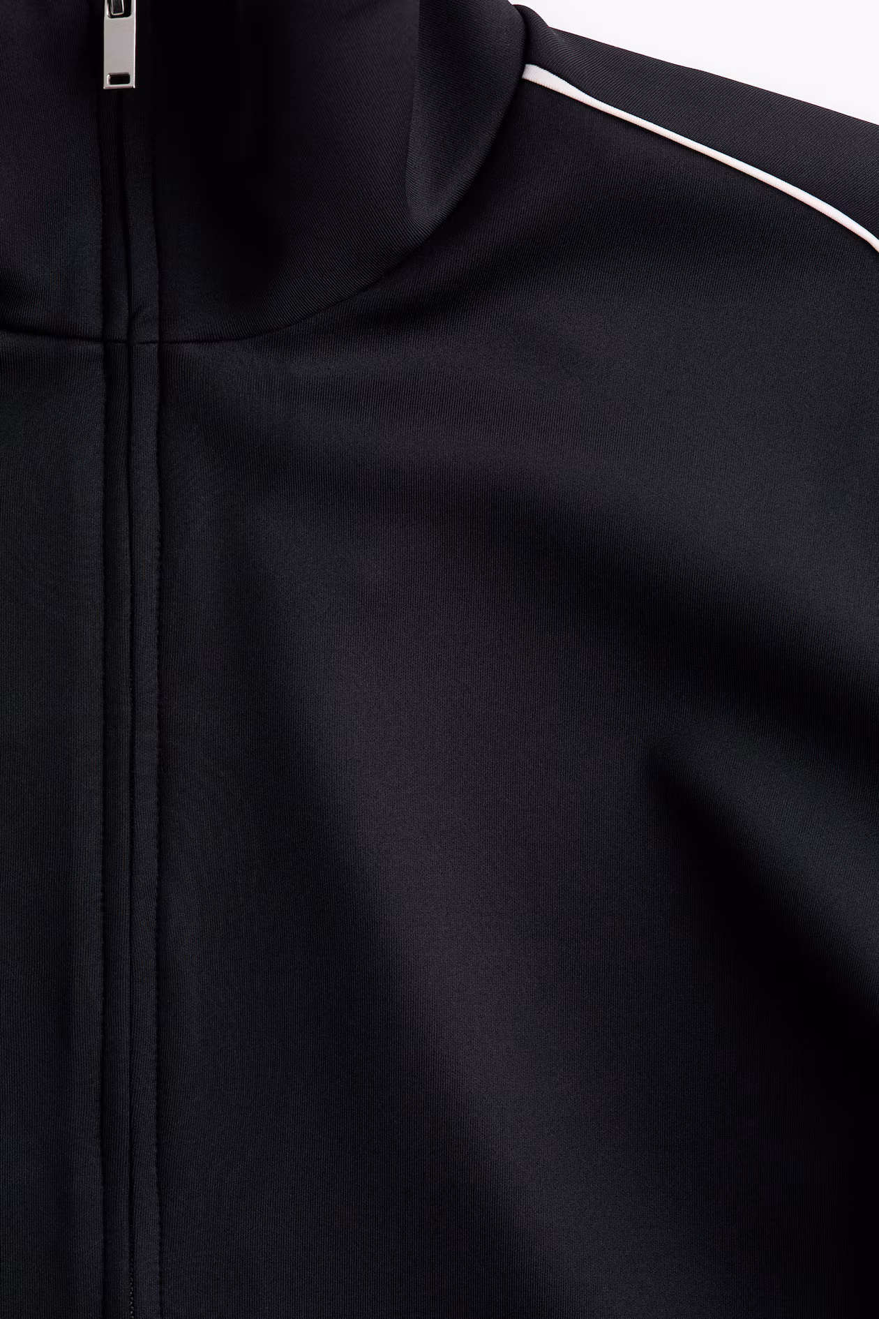 Jacket in scuba fabric with accent-color piping on shoulders and along sleeves. Stand-up collar, concealed two-way zipper at front, and welt side pockets. Dropped shoulders and ribbing at cuffs and hem.