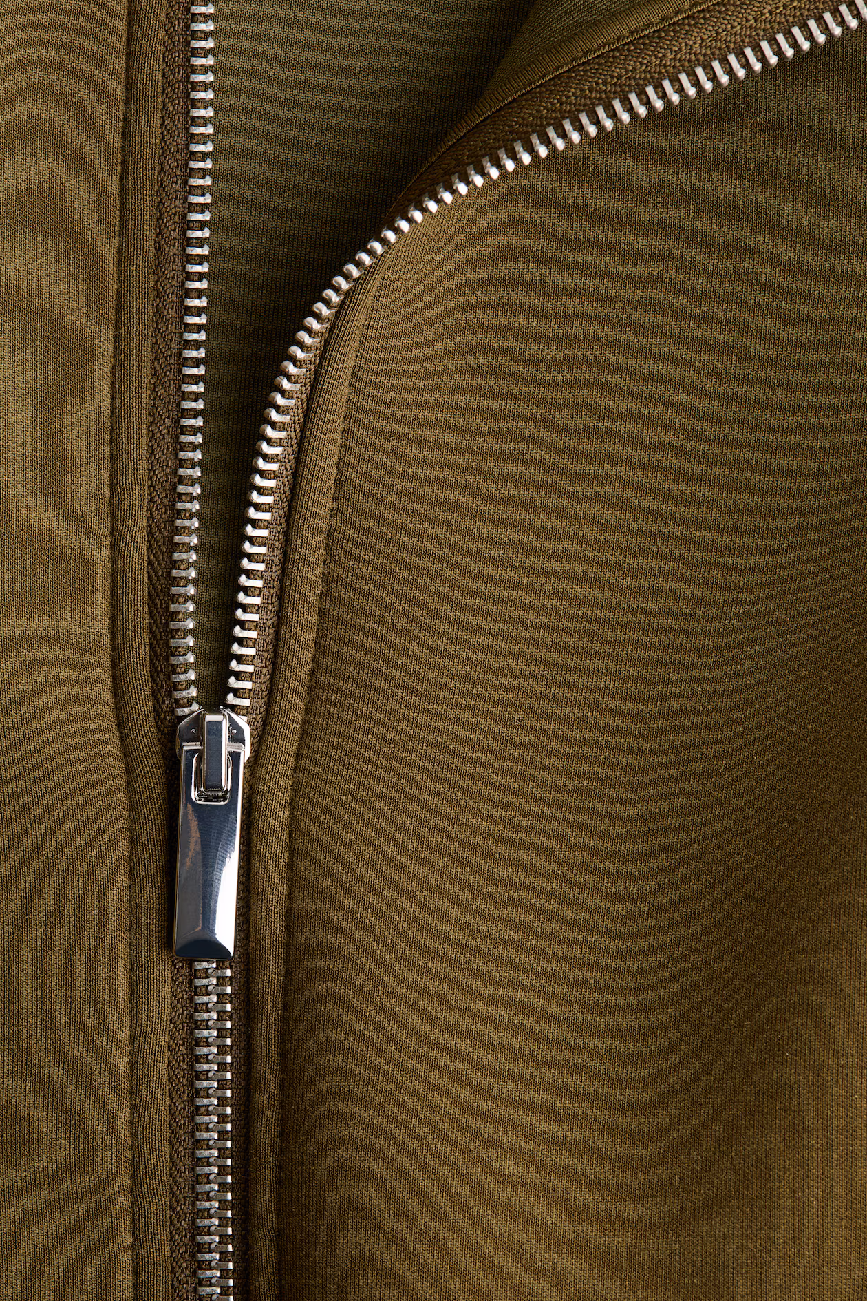Jacket in scuba fabric. Chimney collar, zipper at front, and dropped shoulders. Pleats at hem. Unlined.