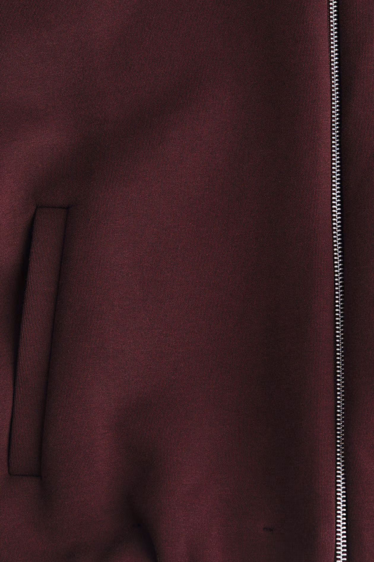 Oversized sweatshirt in soft scuba fabric. Round neckline, zipper at front, dropped shoulders, and welt front pockets. Covered elastic at cuffs and hem.