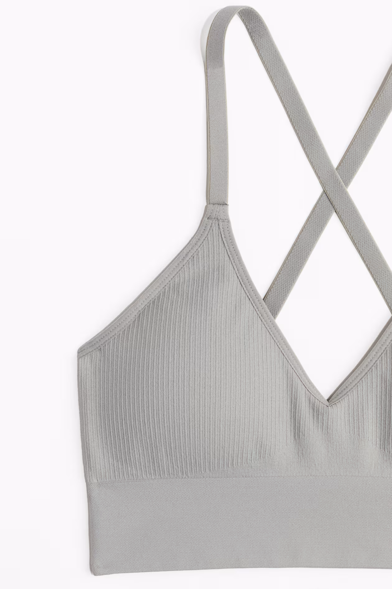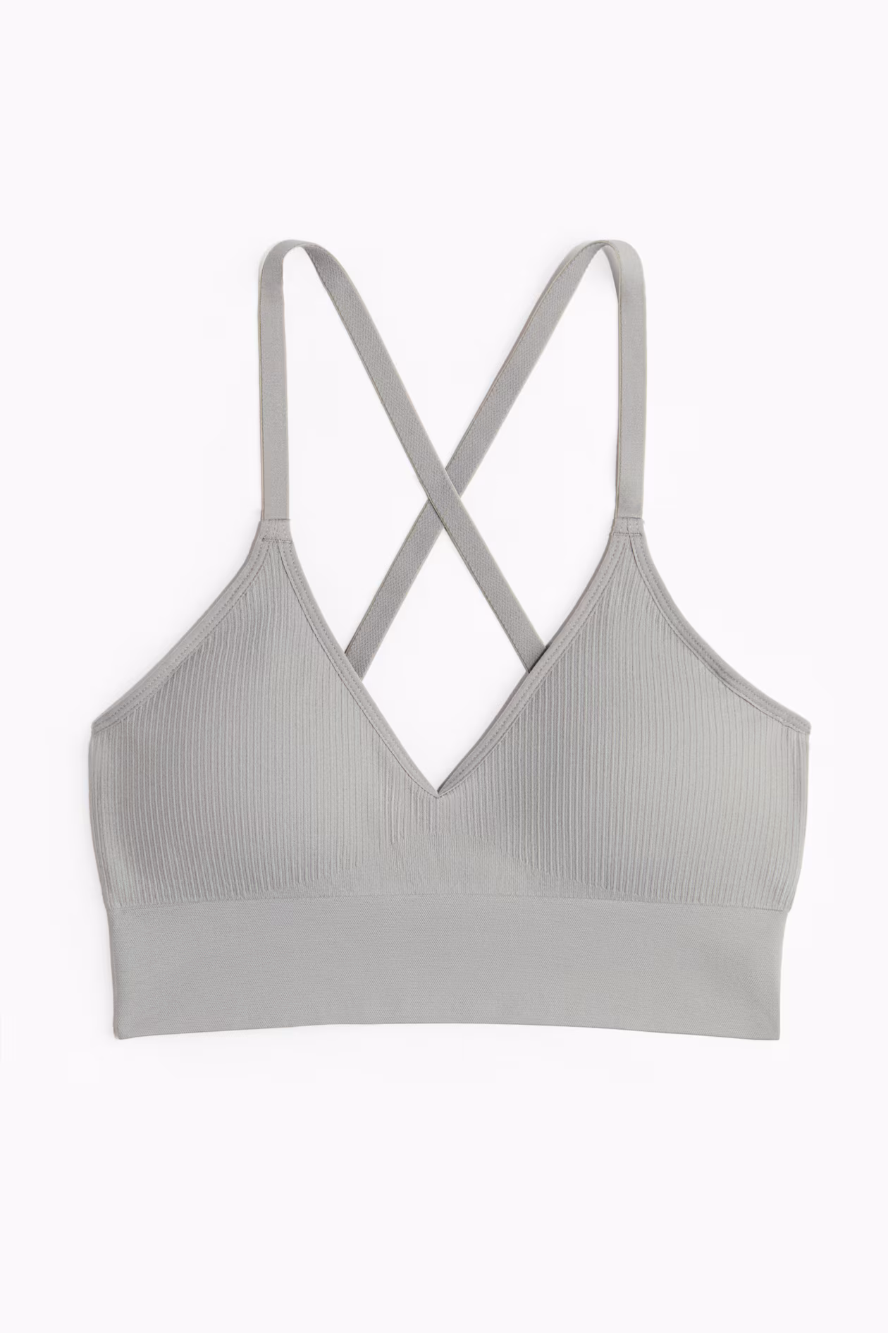 Sports bra in functional fabric made with DryMove™ to wick away moisture from skin and keep you comfortably dry while moving. Adjustable shoulder straps with various fastening options at back, lined cups with removable inserts for shaping and adjustable fit, and wide elastic at lower edge. Medium support, suitable for moderate-intensity workouts. Designed with minimal seams for added comfort and increased freedom of movement.