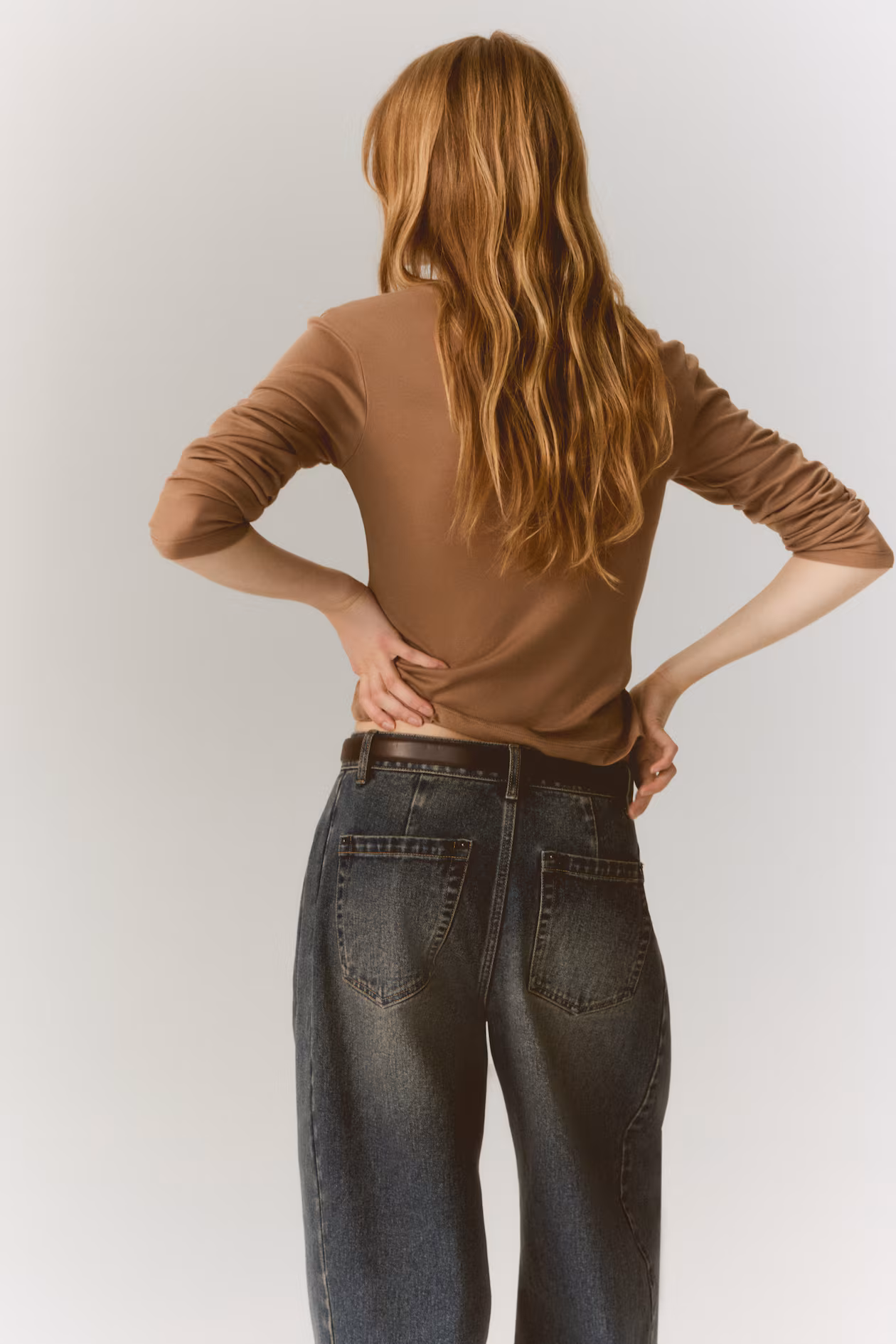 Long-sleeved cardigan in sheer, finely ribbed jersey. Round neckline and buttons at front.