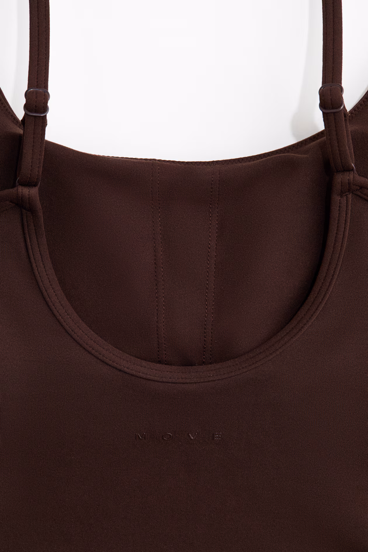 Slim-fit sports crop top in functional fabric made with SoftMove™ for the ultimate in softness and comfort plus contouring support and DryMove™ to wick away moisture from skin. Narrow, adjustable shoulder straps, shelf bra with removable inserts for shaping and adjustable fit, and non-chafe flatlock seams for added comfort and increased mobility. Elasticized lower edge.