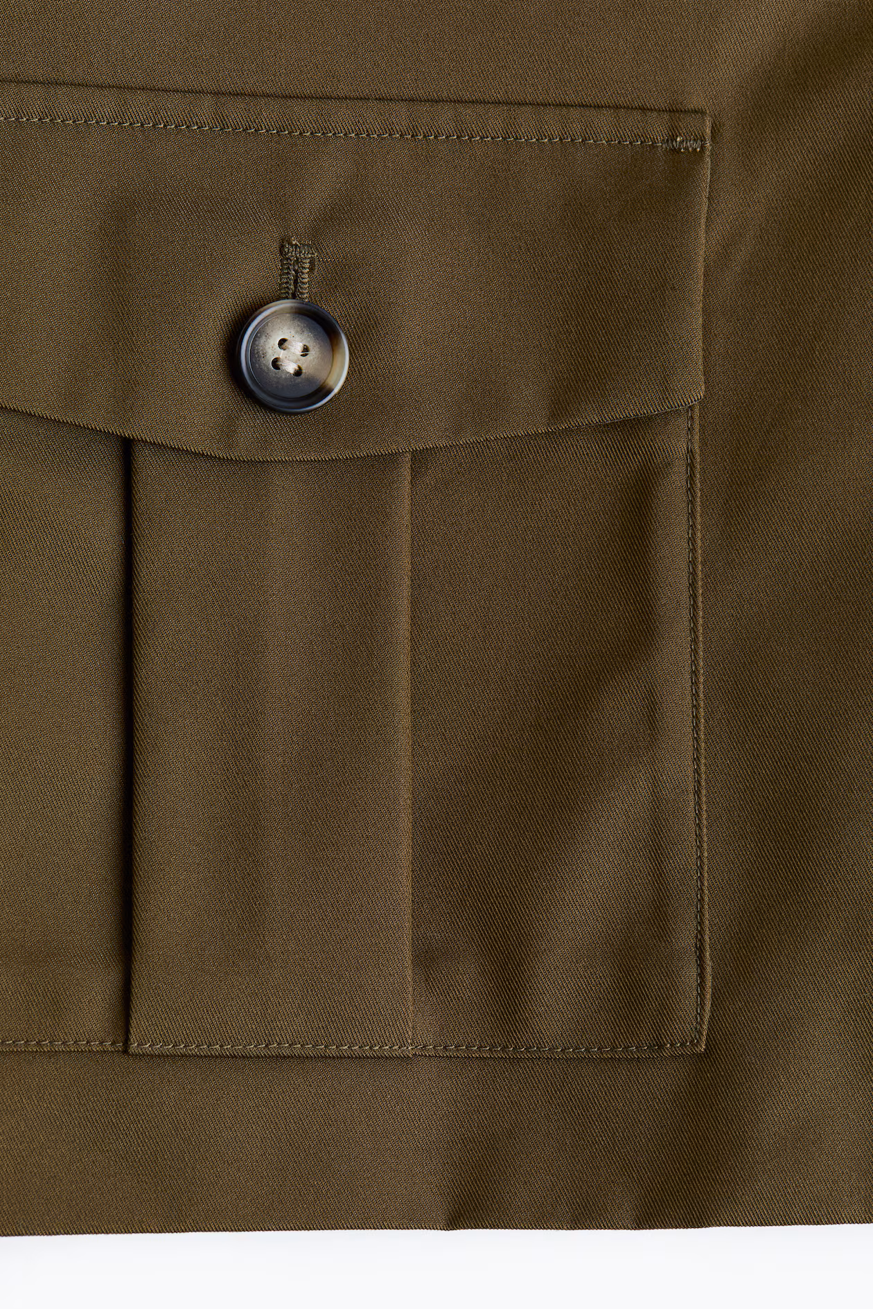 Short jacket in woven fabric. Round neckline and buttons at front. Lined.