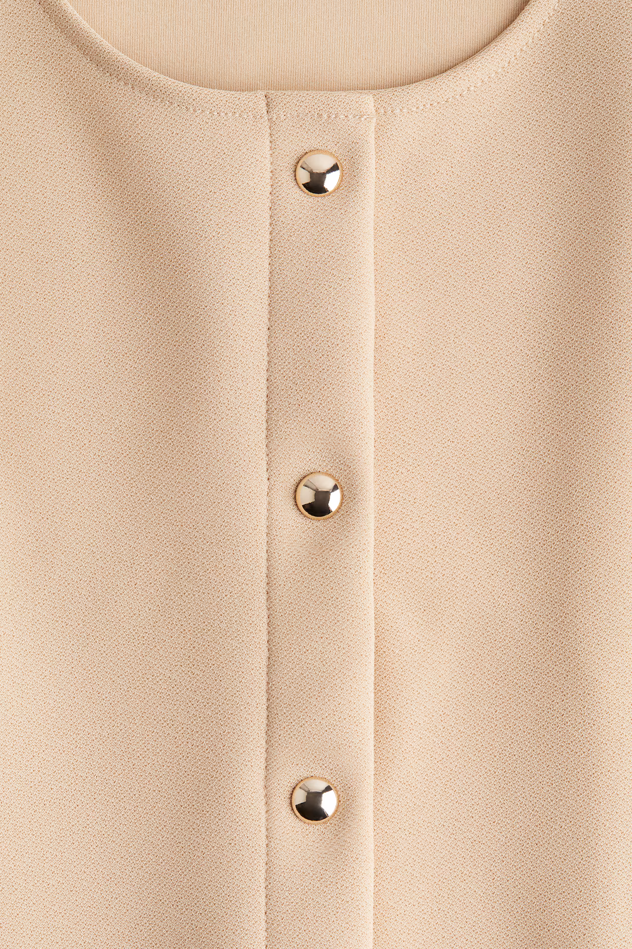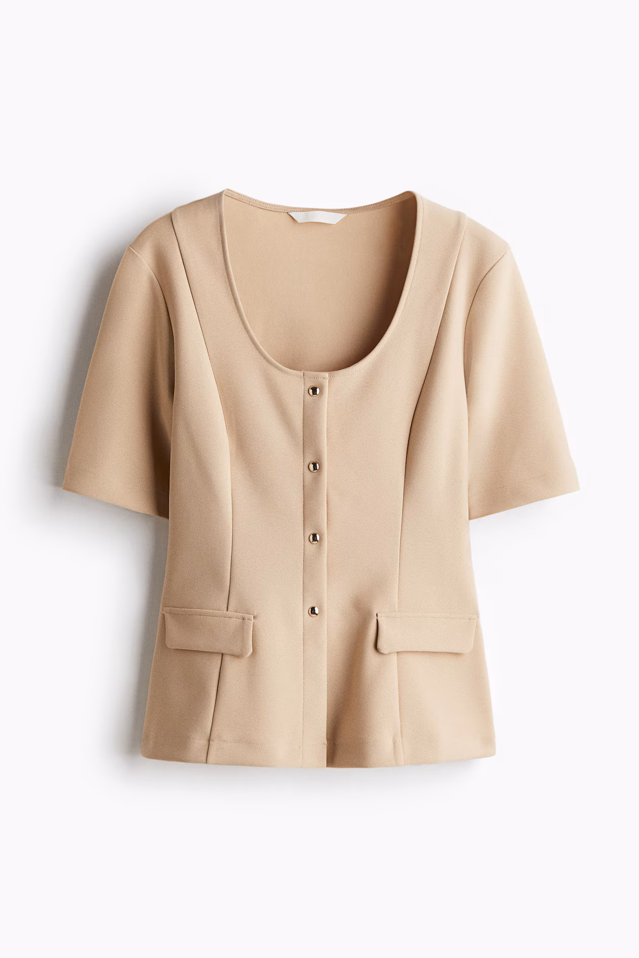 Short-sleeved cardigan in thick jersey with shaping seams at front and back. Scoop neck, snap fasteners at front, and decorative front pocket flaps.