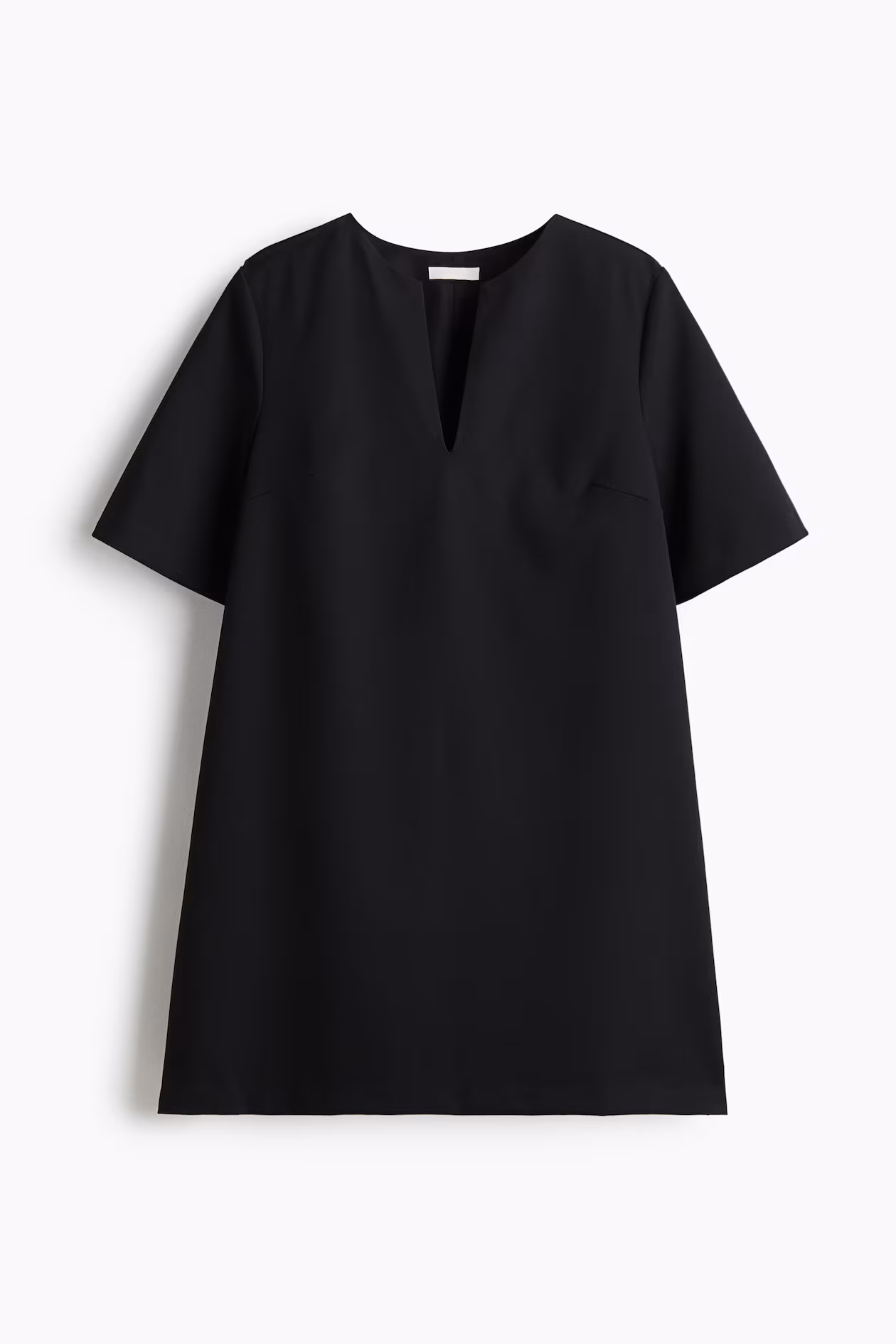 Short dress in woven fabric. Round neckline, V-shaped opening at front, and short sleeves. Lined.