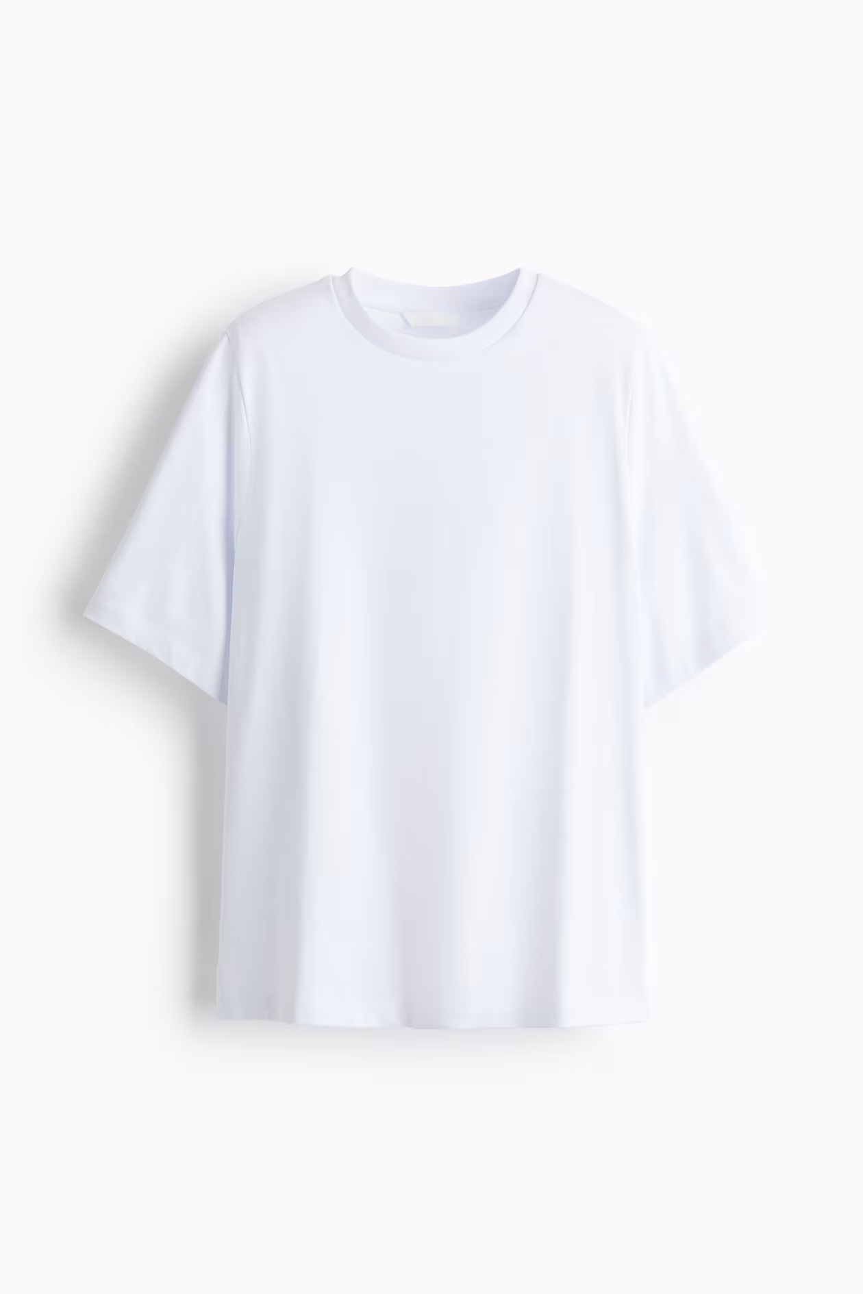 T-shirt in heavyweight cotton jersey. Crew neck, thick shoulder pads, and a straight-cut hem with a slit at sides.