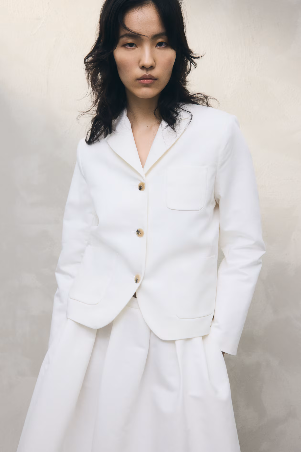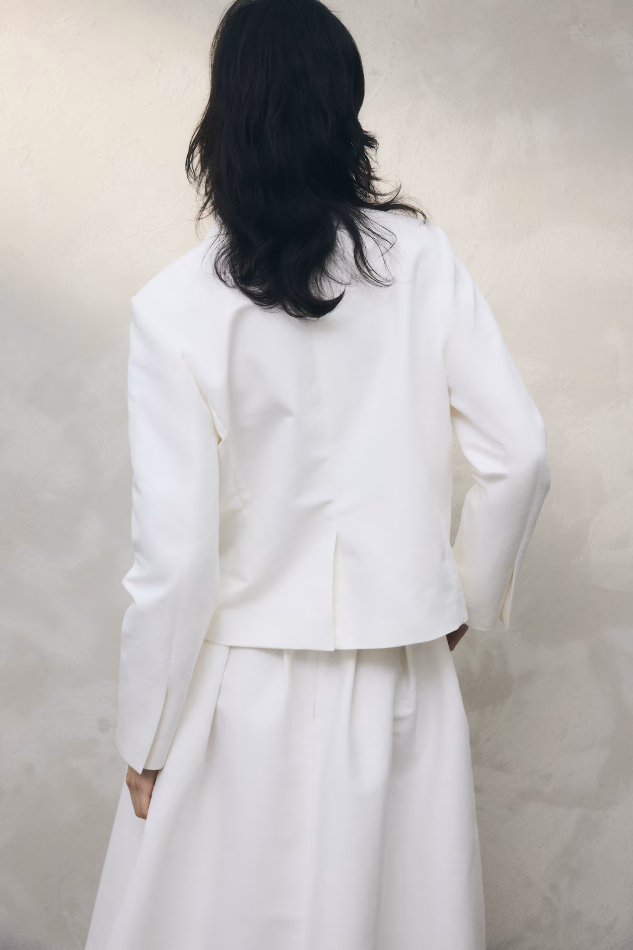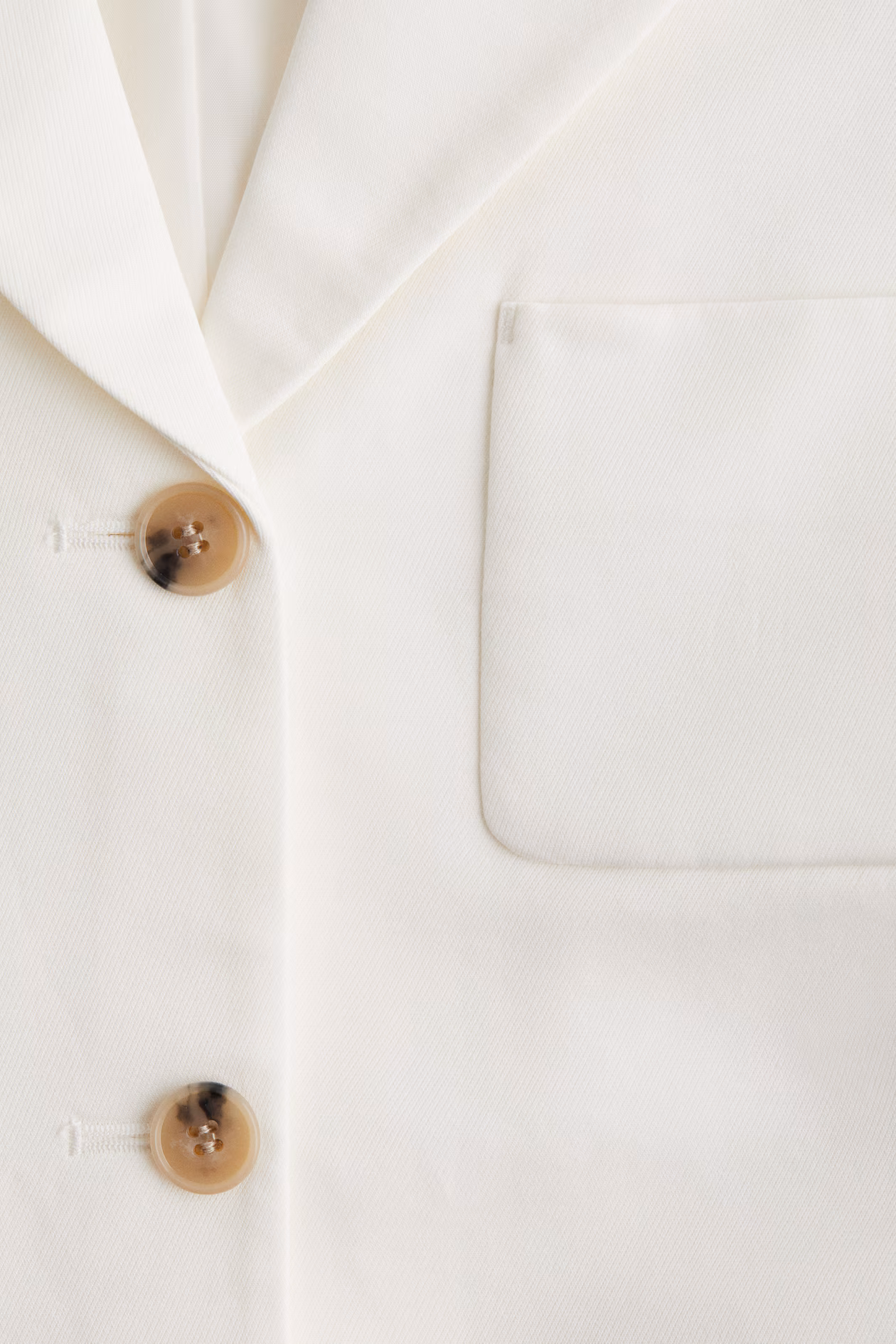 Short, single-breasted blazer in woven fabric. Notched lapels and buttons at front. Chest pocket, front pockets, and a slit at cuffs. Vent at back. Lined.