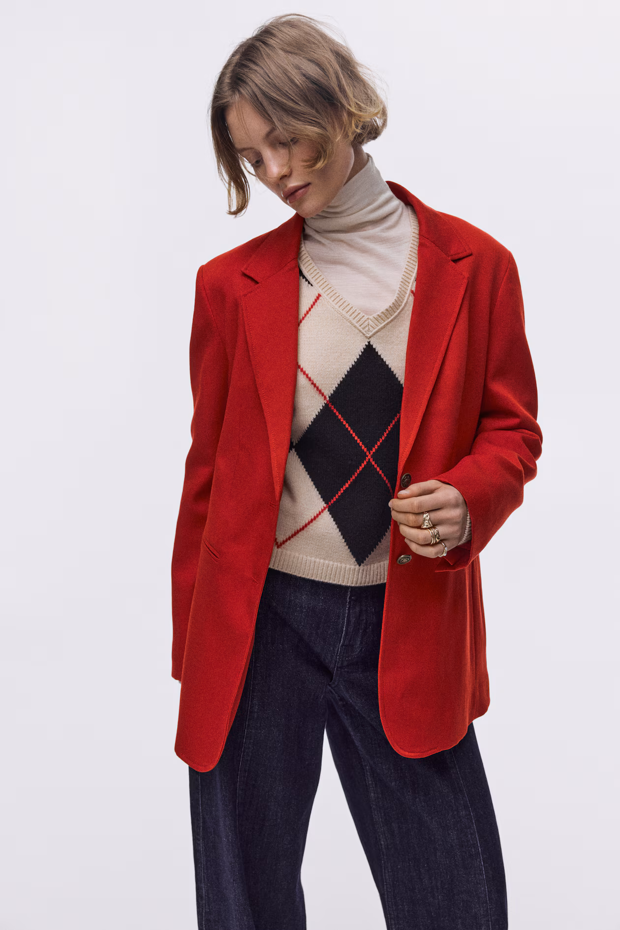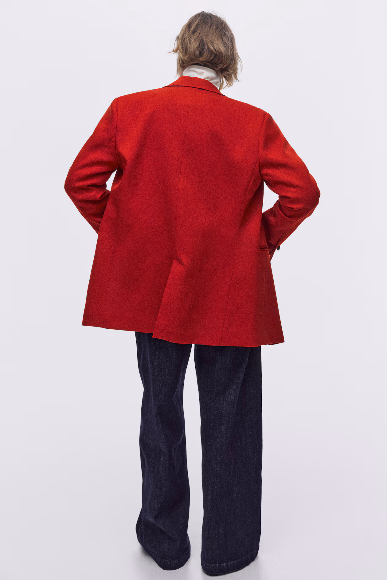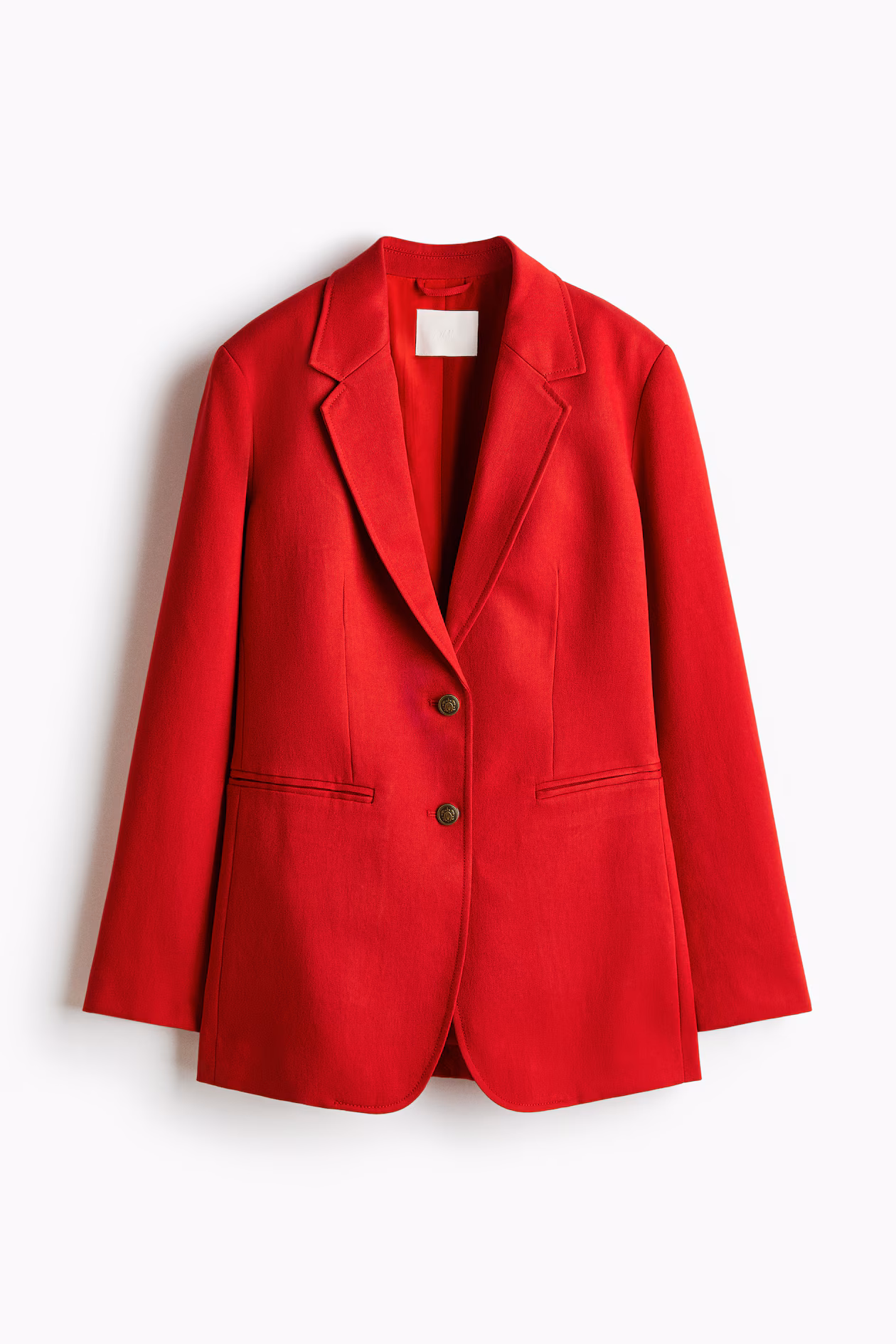Single-breasted blazer in twill. Notched lapels, motif-detail buttons at front, shoulder pads, and welt front pockets. Lined.