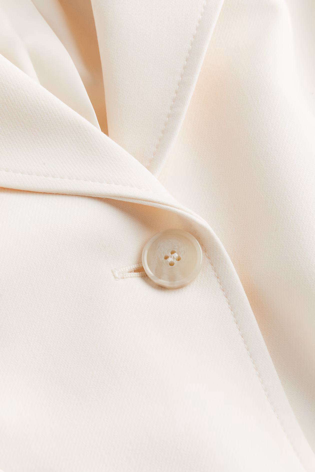 Knee-length coat in woven fabric. Wide, notched lapels, one button at front, and welt front pockets with flap. Lined.