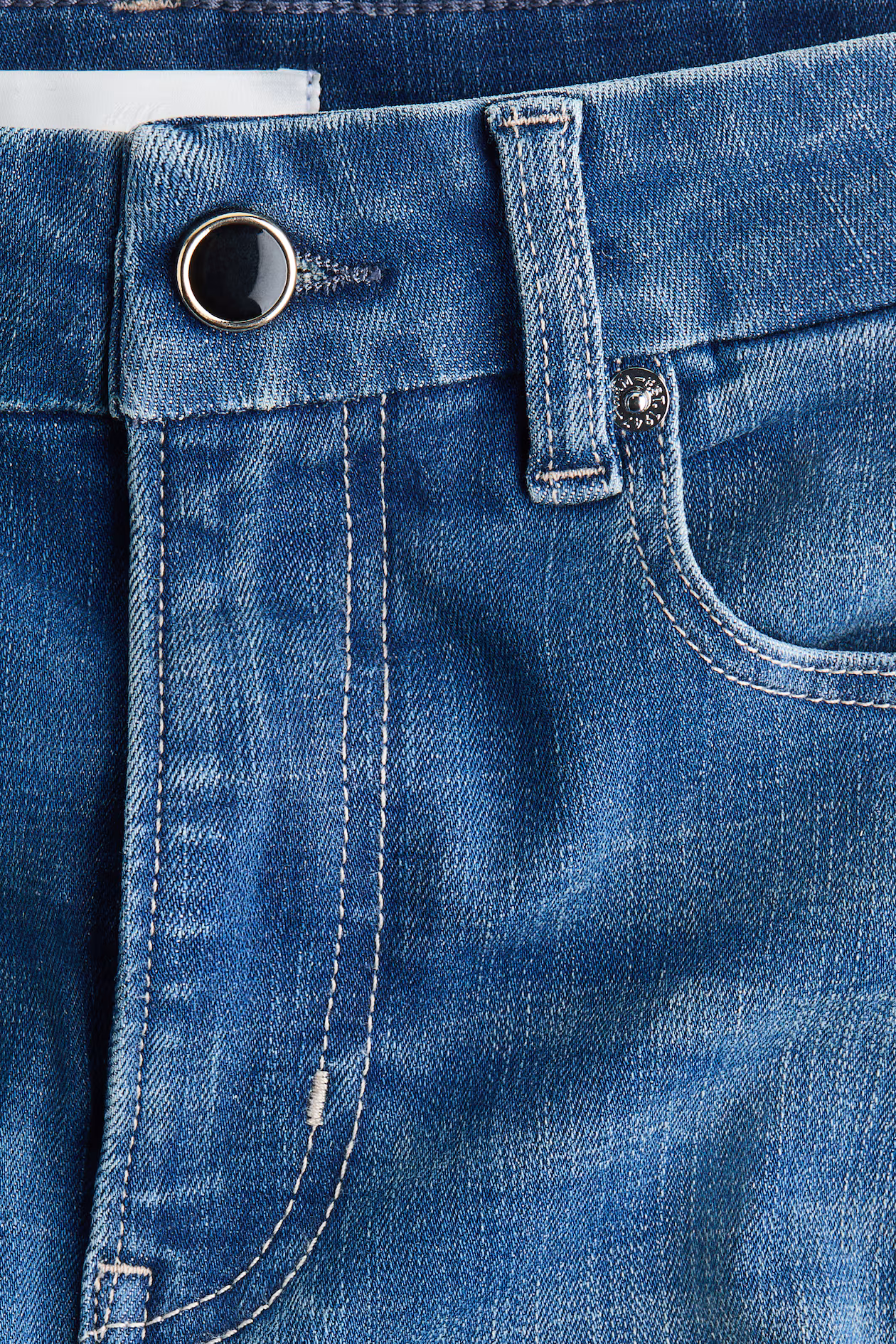 5-pocket jeans in denim with gentle stretch for good comfort. Slim fit from waist to thigh and skinny fit from knee to hem. High waist and zip fly with button. Regular length, designed to fall at top of foot with little or no stacking. The pair you'll return to again and again.