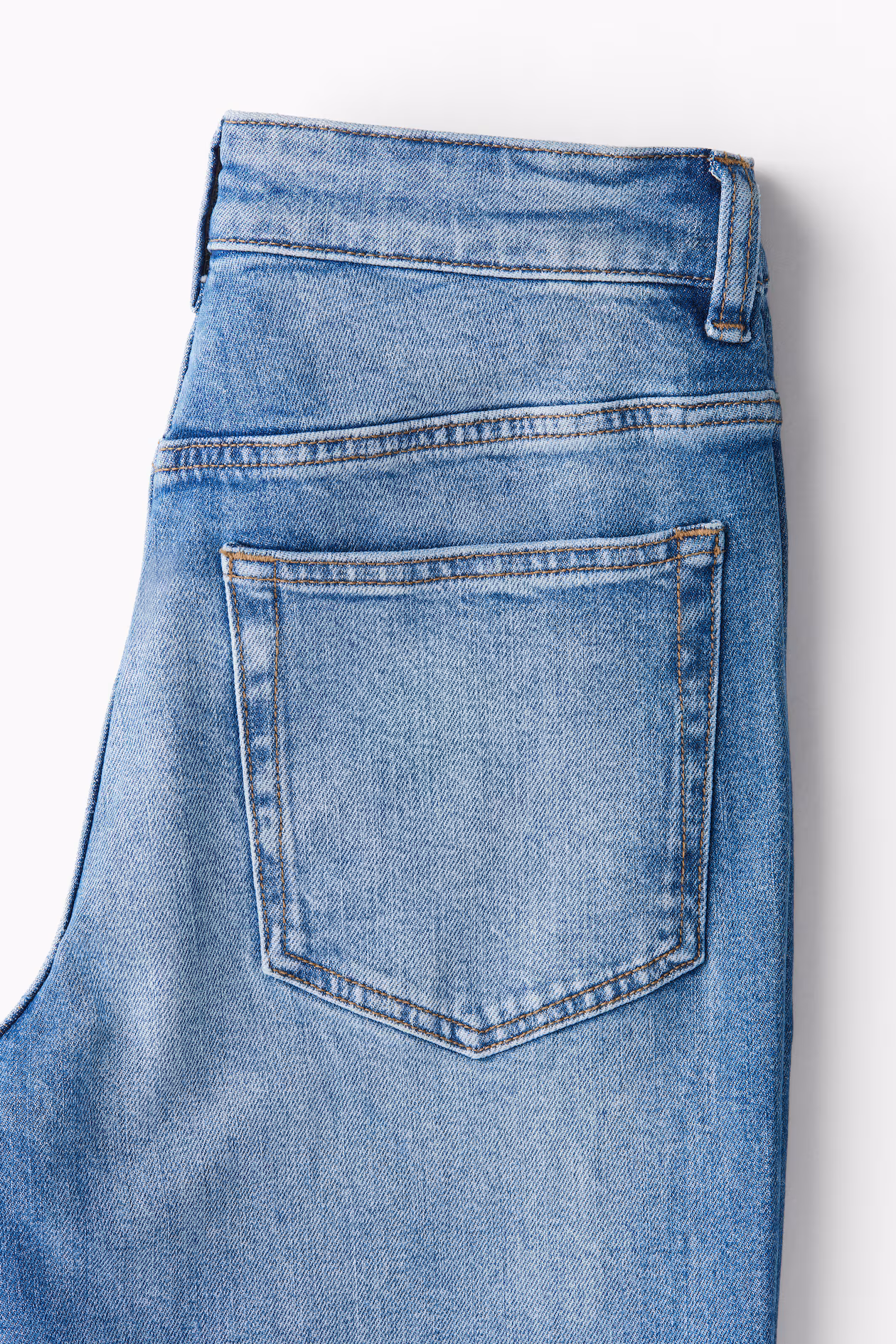 Slim-fit, 5-pocket jeans in cotton denim with gentle stretch for comfort. High waist, zip fly with button, and slim legs.