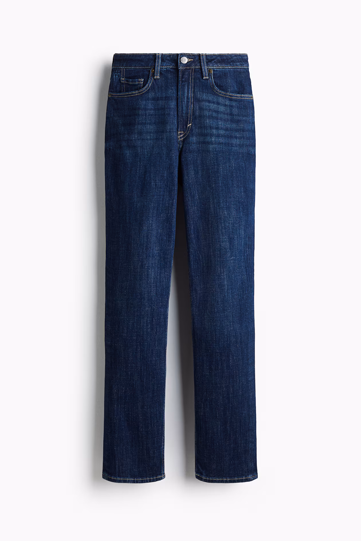5-pocket jeans in denim with gentle stretch for good comfort. Regular fit from waist to thigh and a narrow, straight cut from knee to hem. High waist and zip fly with button. Straight, regular-length legs, designed to fall at top of foot with little or no stacking. A versatile, everyday design.
