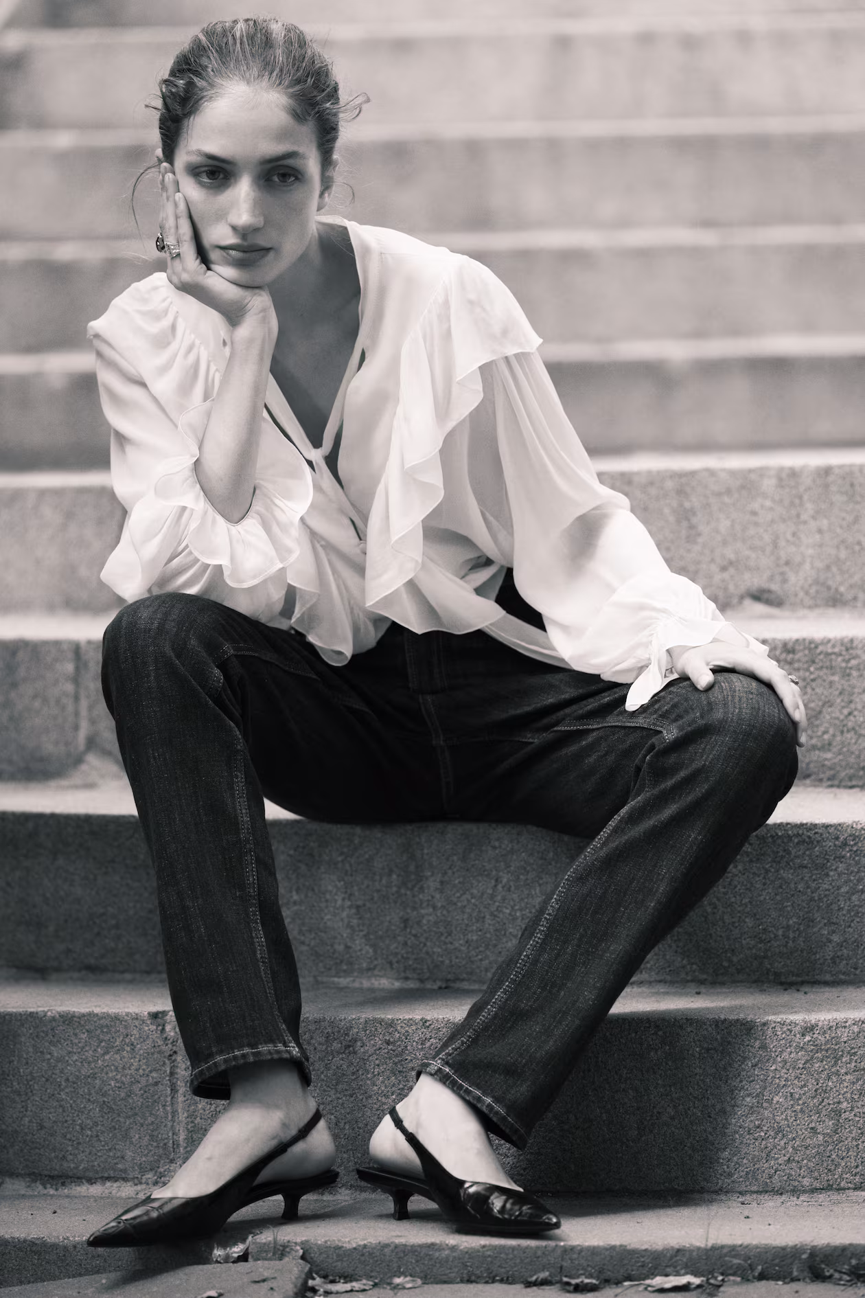- The model is 175cm/5'9" and wears a size 4