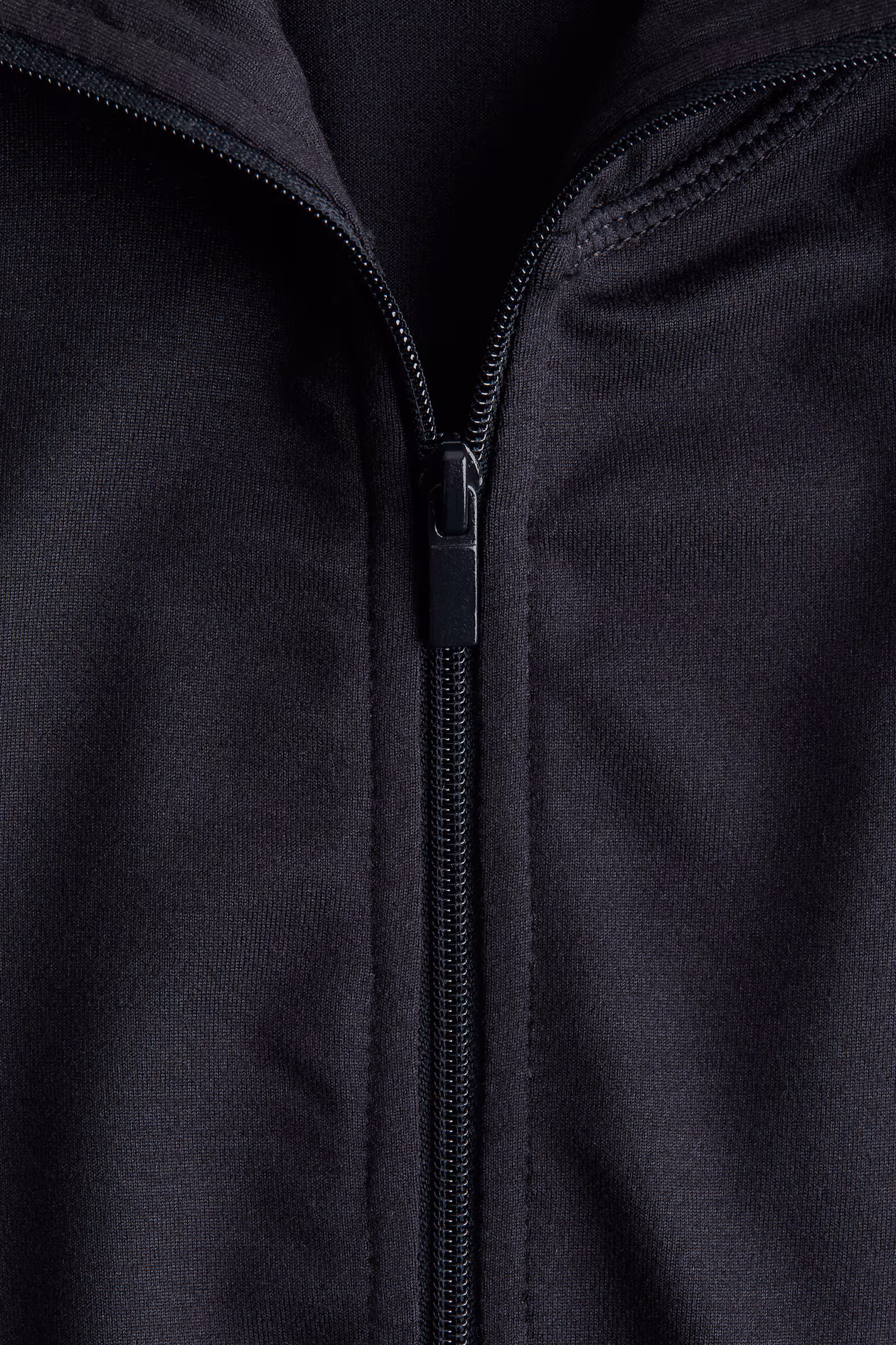 Fitted jacket in brushed jersey with a soft feel. Stand-up collar, zipper at front, and long raglan sleeves with cuffs.