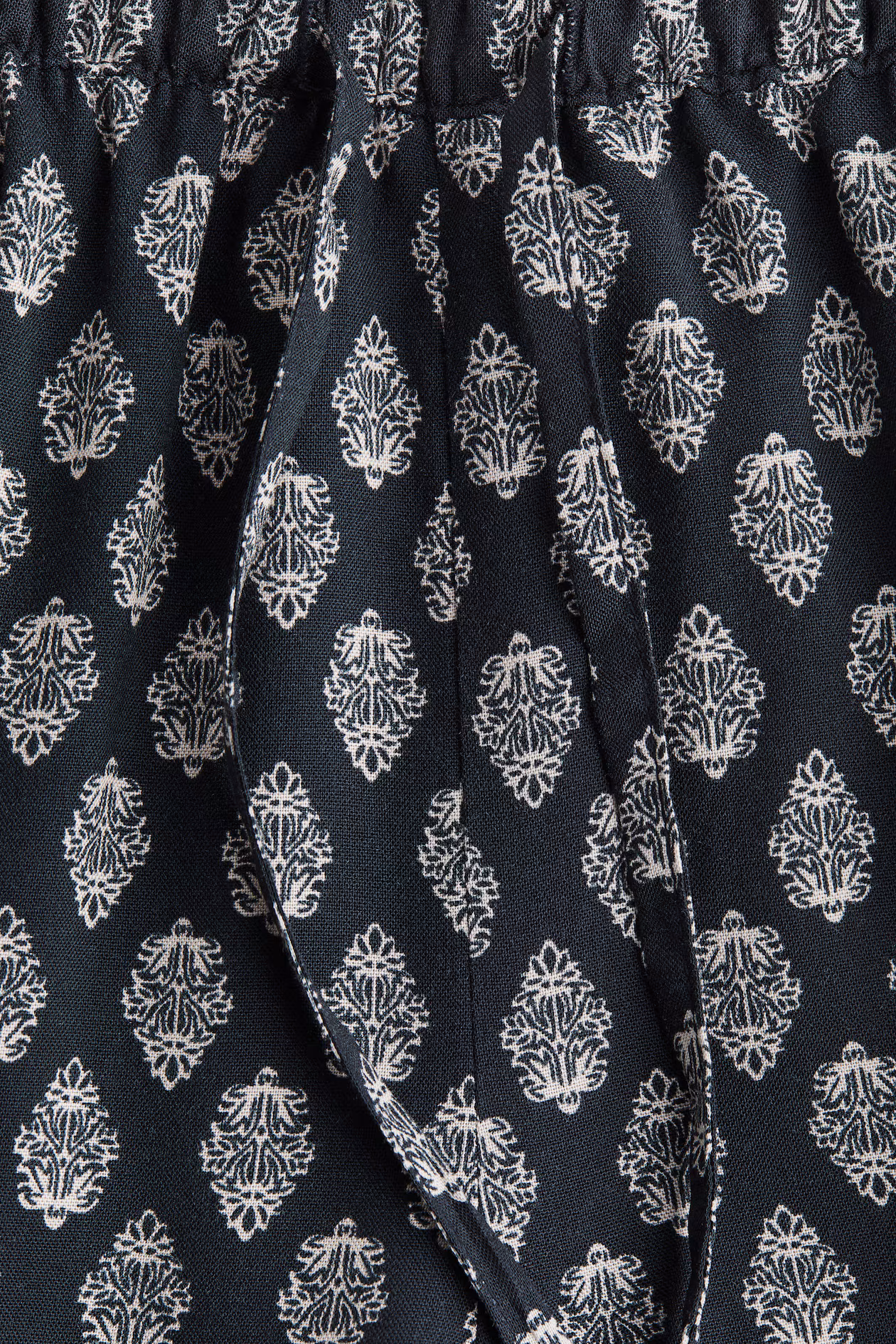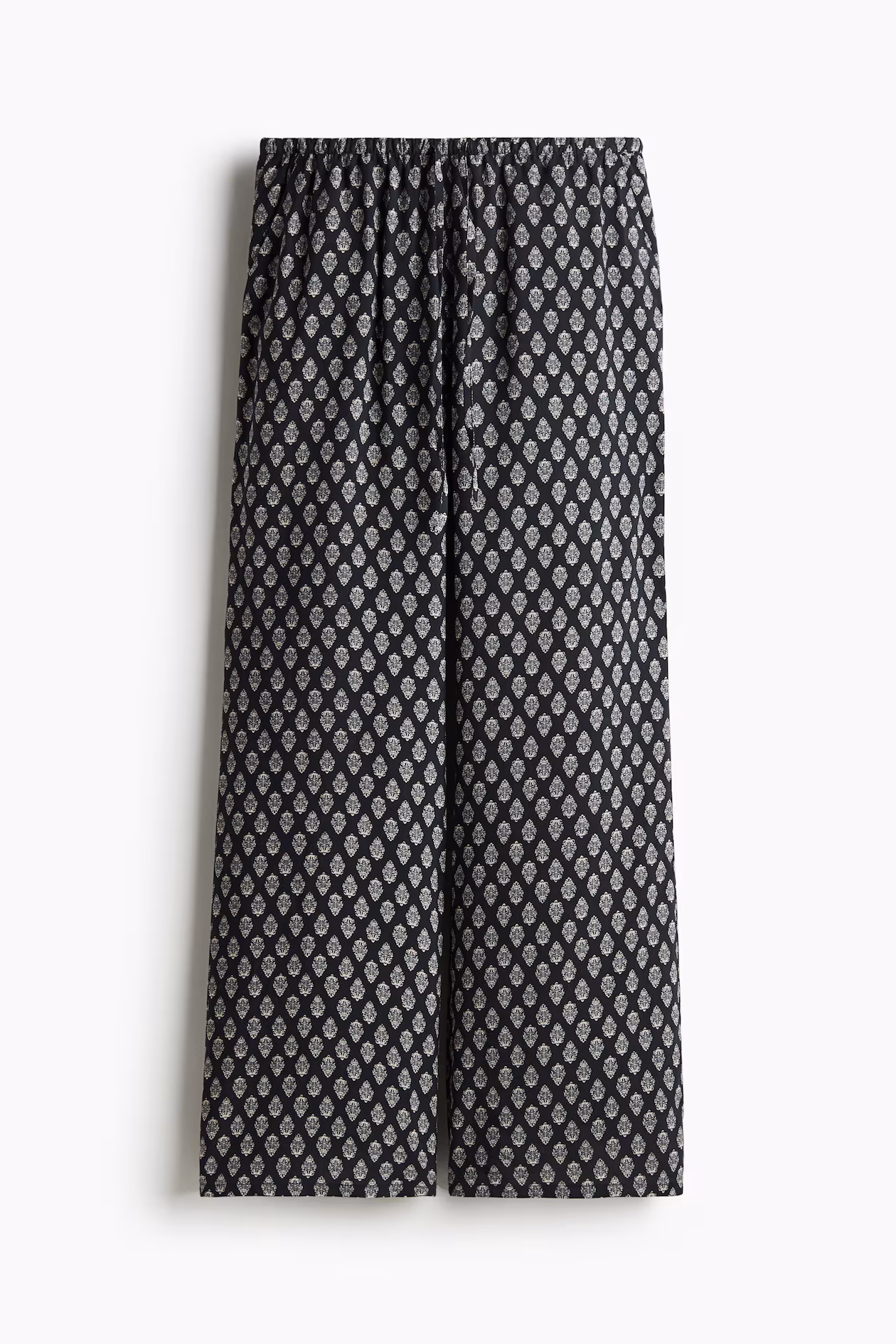 Trousers in an airy viscose weave featuring a low waist with covered elastication and a narrow drawstring. Diagonal side pockets and straight legs.