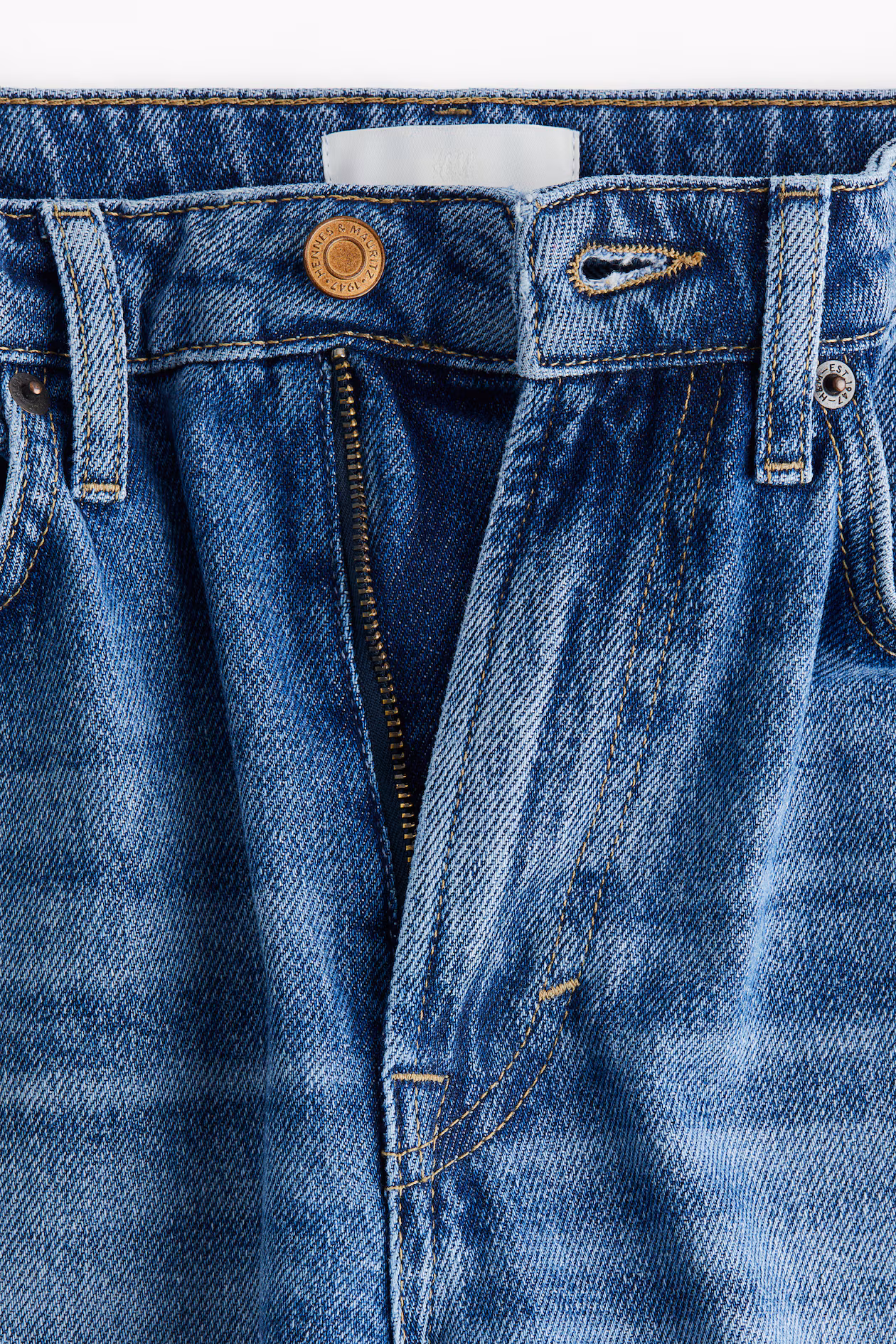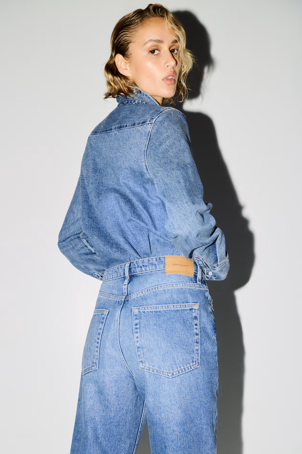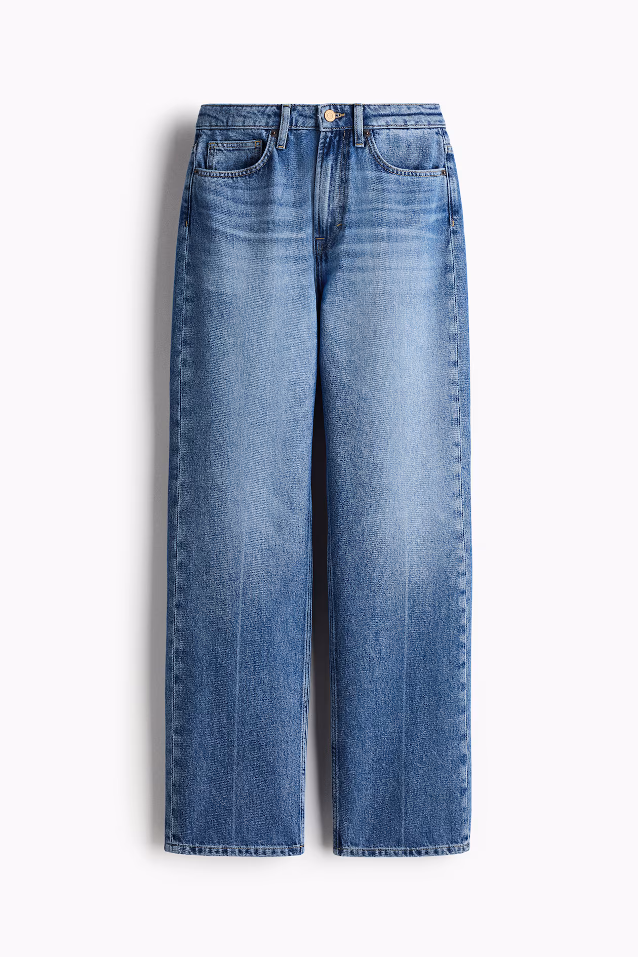 5-pocket jeans in rigid cotton denim that feels firm at first, softening and relaxing with wear. Regular fit from waist to hip and looser, straight cut from thigh to hem. High waist and zip fly with button. Straight, regular-length legs, designed to fall at top of foot with little or no stacking. The jeans we want to live in every day.