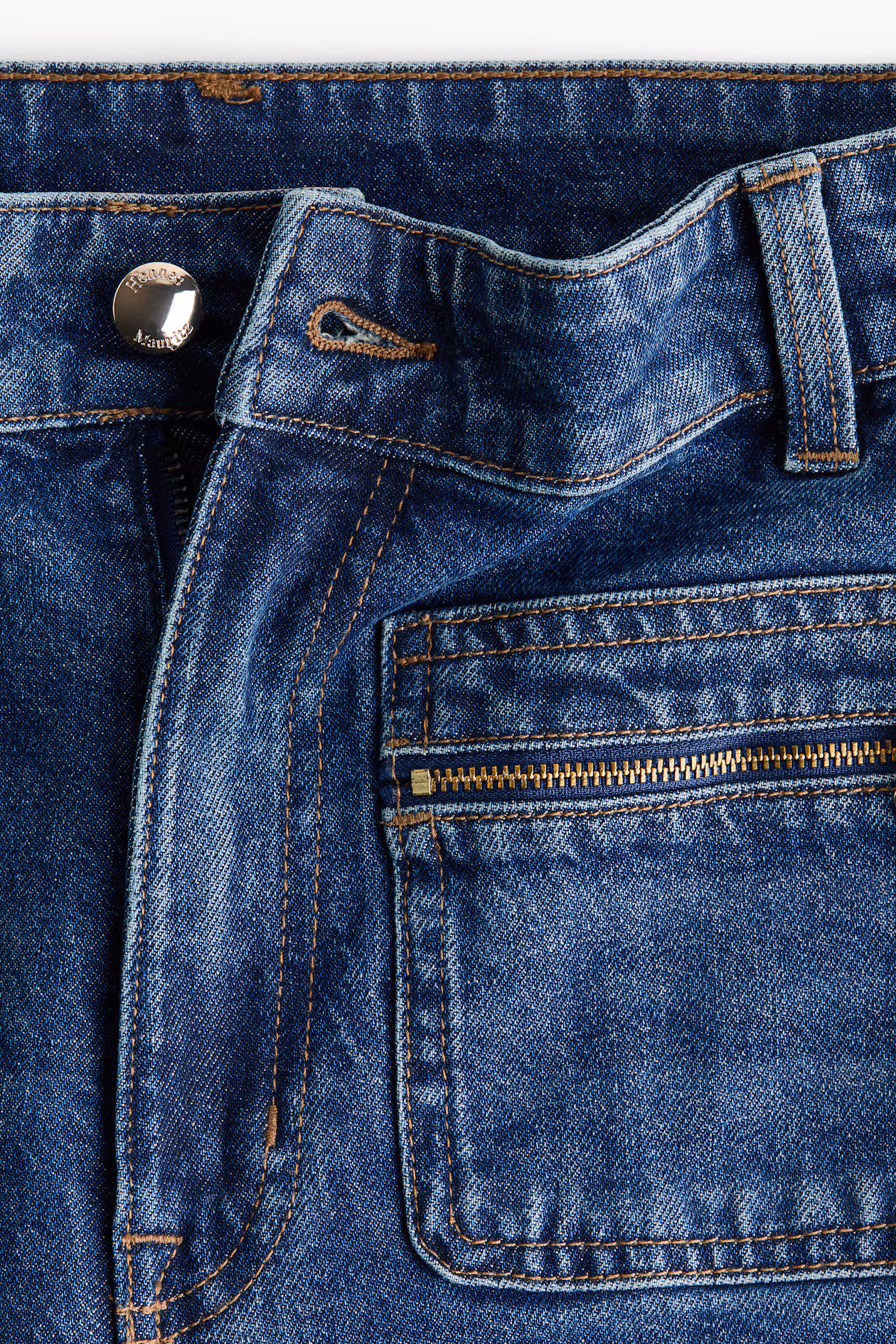 Jeans in cotton denim with gentle stretch for good comfort. Regular fit from waist to hip and a looser, straight cut from thigh to hem. High waist and zip fly with button. Patch front pockets with zipper, open back pockets, and creases at front and back. Straight, regular-length legs, designed to fall at top of foot with little or no stacking. This classic shape complements everything from hoodies to blazers.