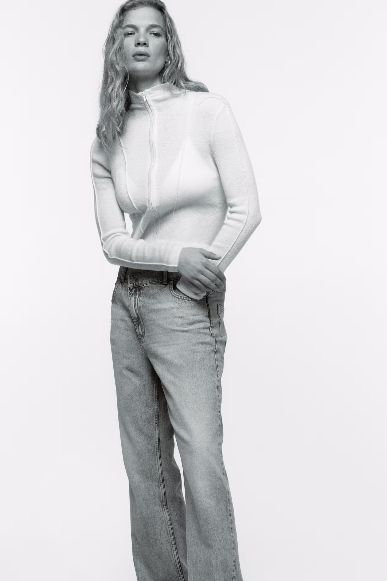 5-pocket jeans in rigid cotton denim that feels firm at first, softening and relaxing with wear. Regular fit from waist to hip and a looser, straight cut from thigh to hem. High waist and a crossover zip fly with one visible and one concealed button. Straight, regular-length legs, designed to fall at top of foot with little or no stacking. This classic shape complements everything from hoodies to blazers.