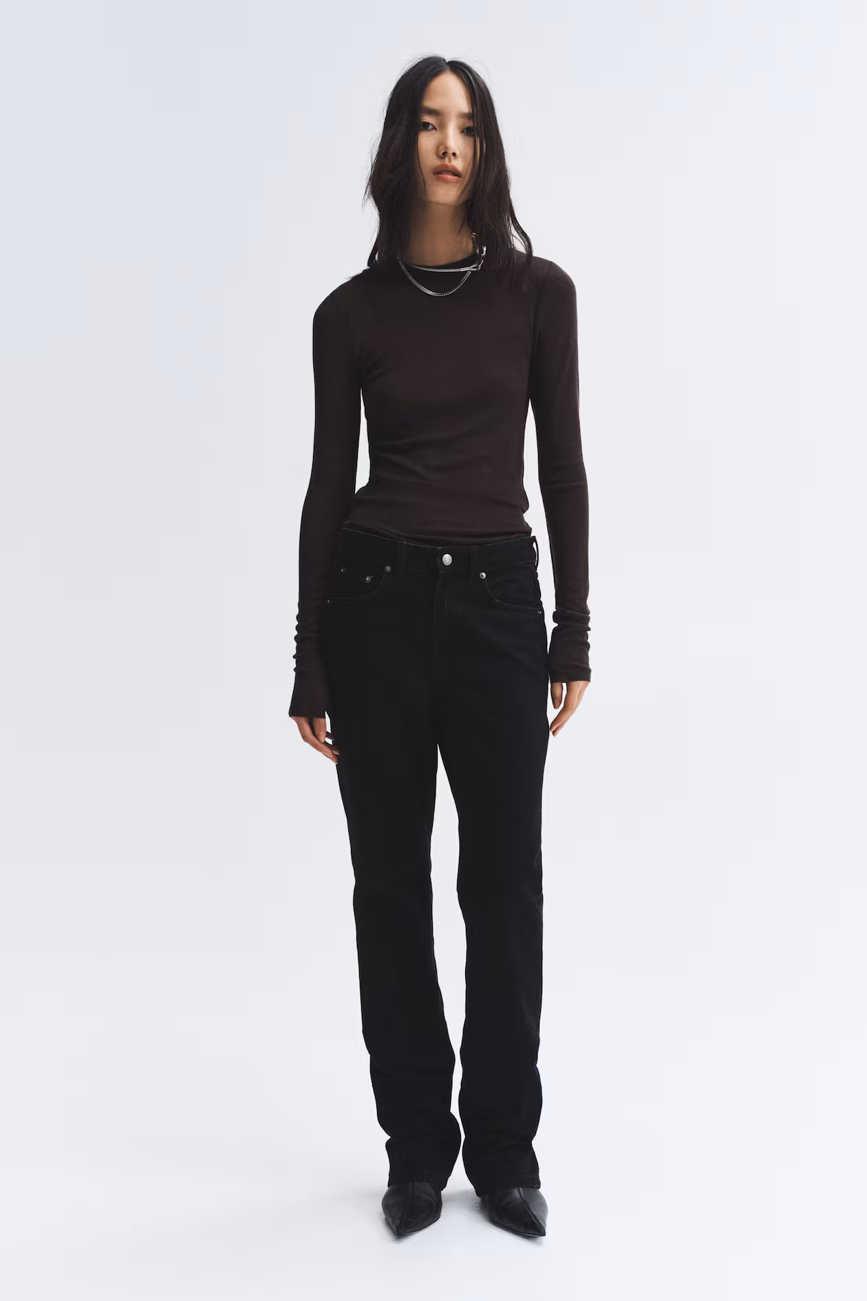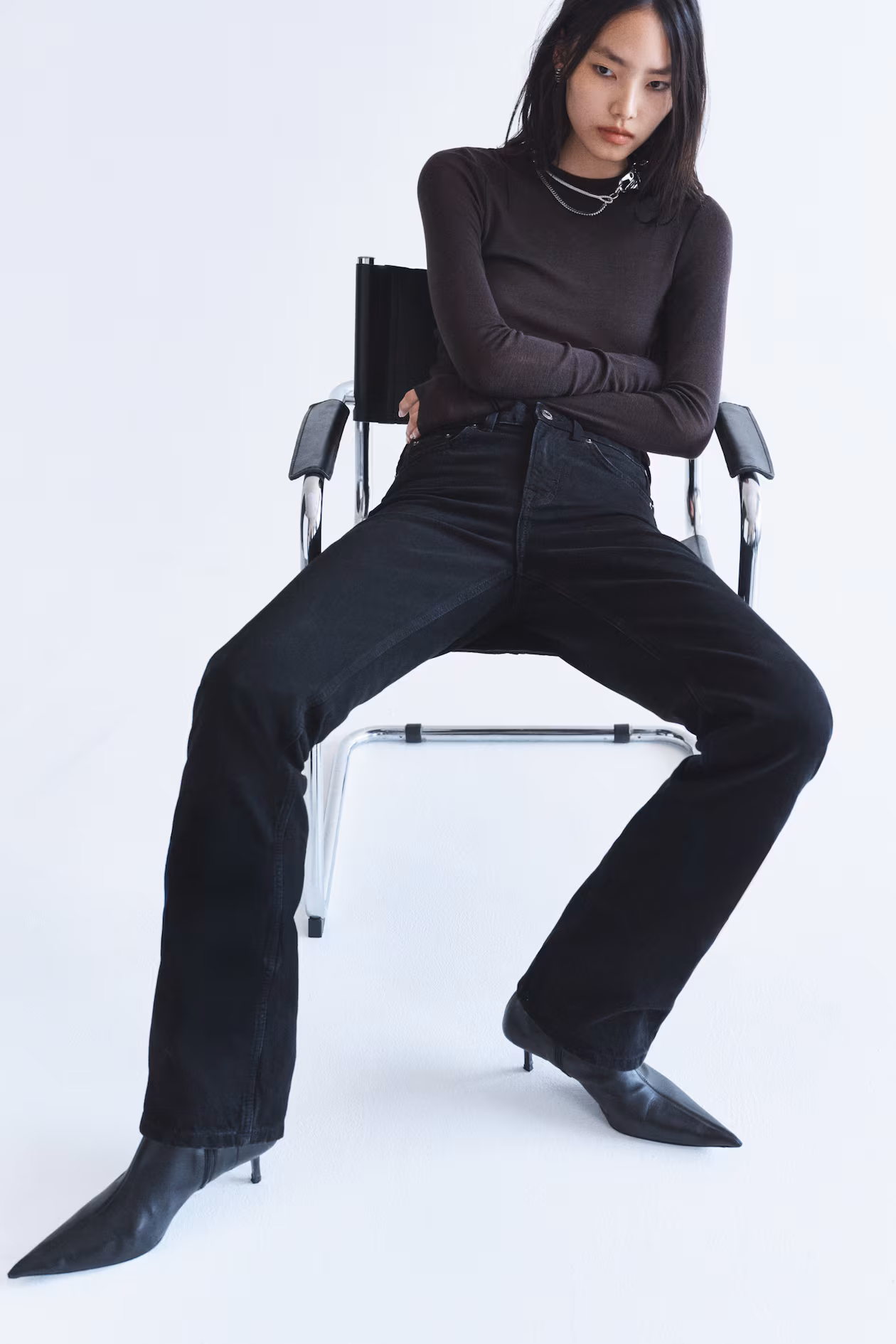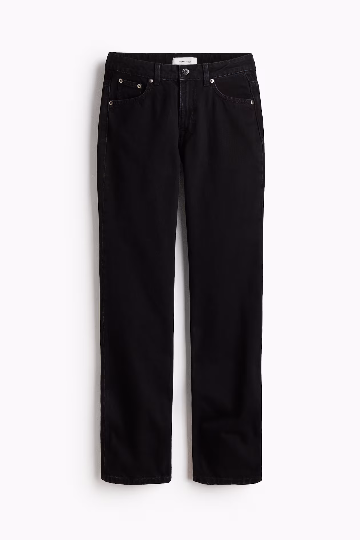 Timeless 5-pocket jeans in rigid cotton denim. Regular waist, zip fly with button, and a classic V-shaped yoke at back. Straight, longer legs.