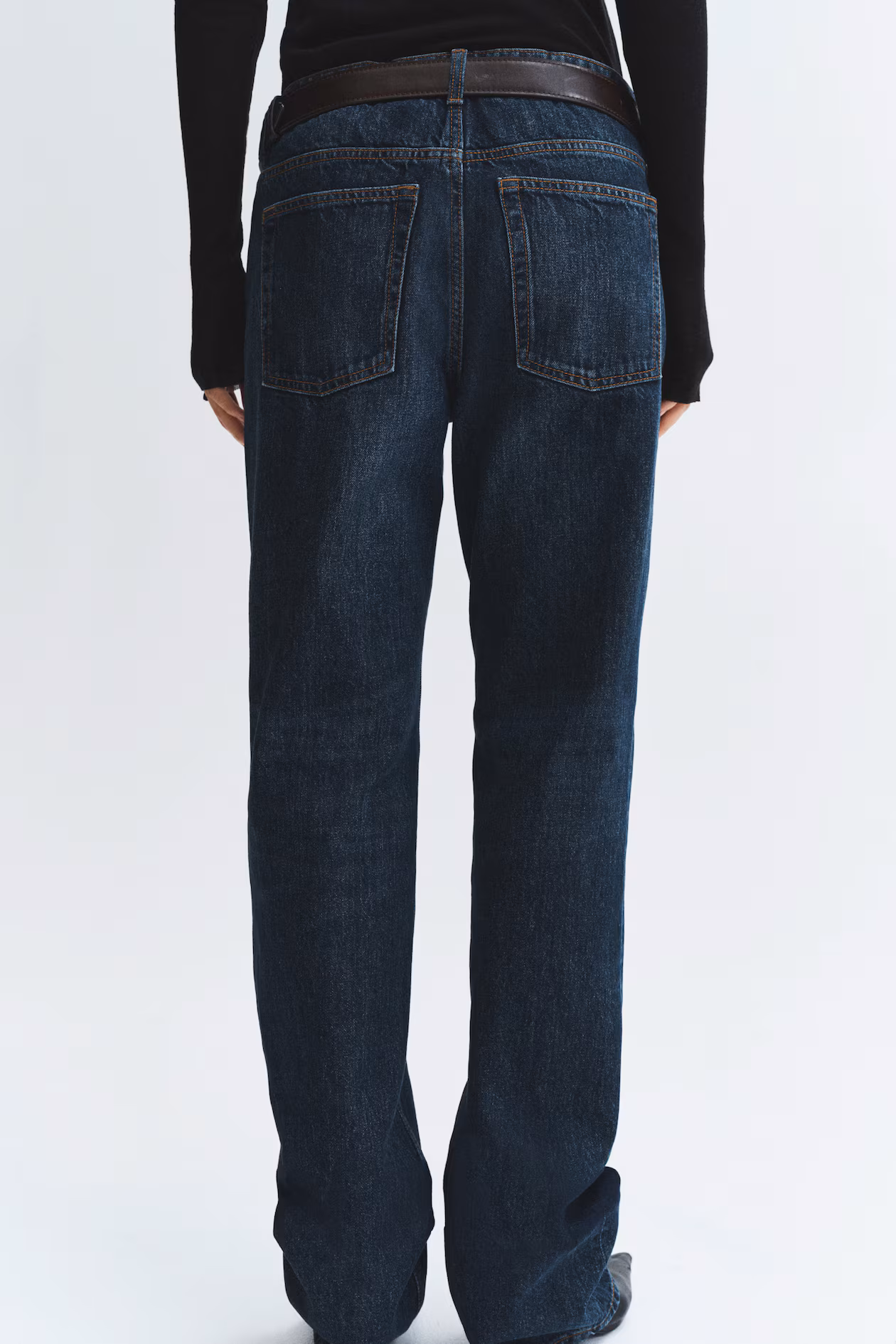Timeless 5-pocket jeans in rigid cotton denim. Regular waist, zip fly with button, and a classic V-shaped yoke at back. Straight, longer legs.