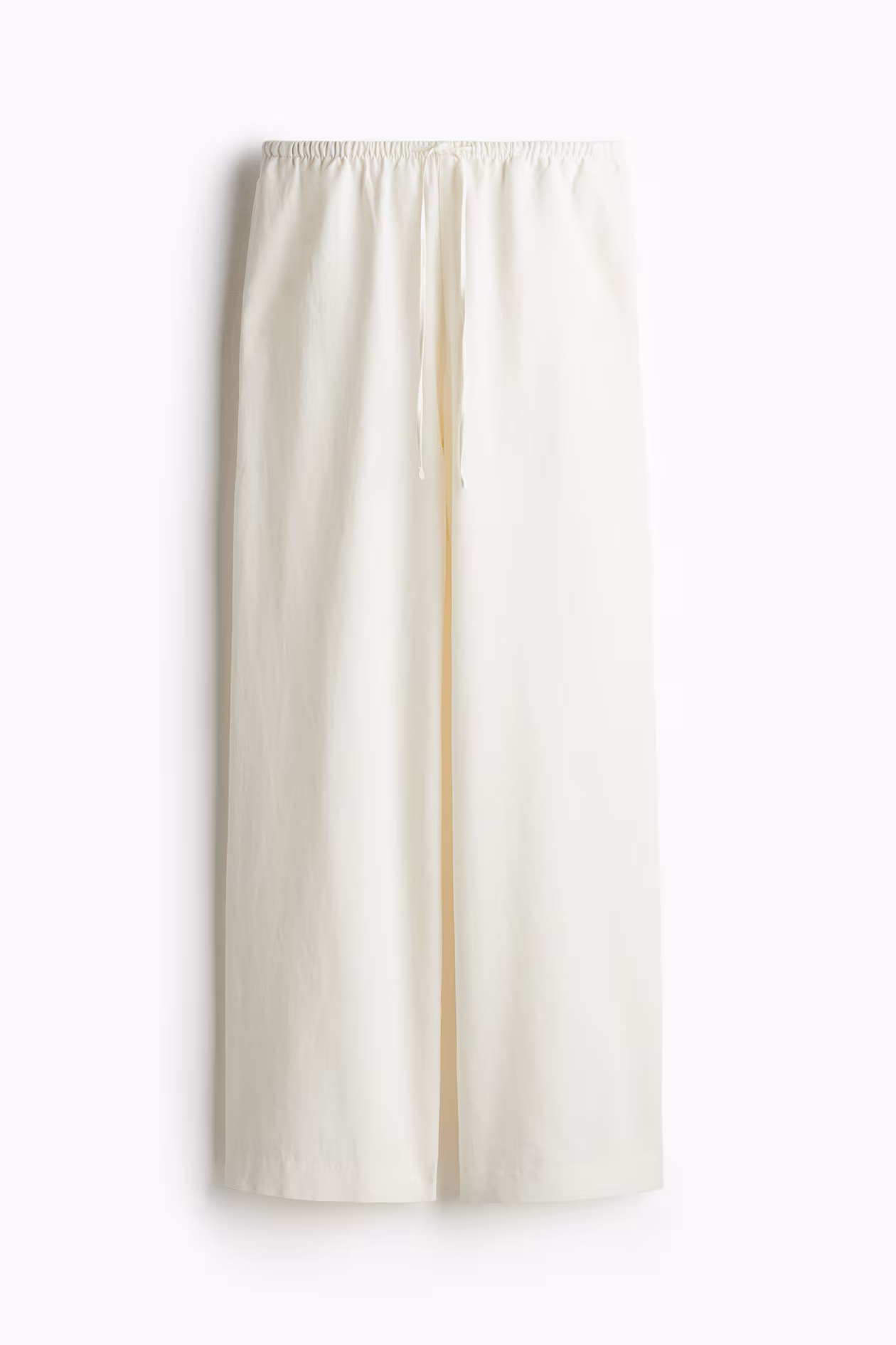 Loose-fit pants in airy, woven, linen-blend fabric. Drawstring and narrow, covered elastic at waistband, discreet side pockets, and welt back pockets. Straight legs.