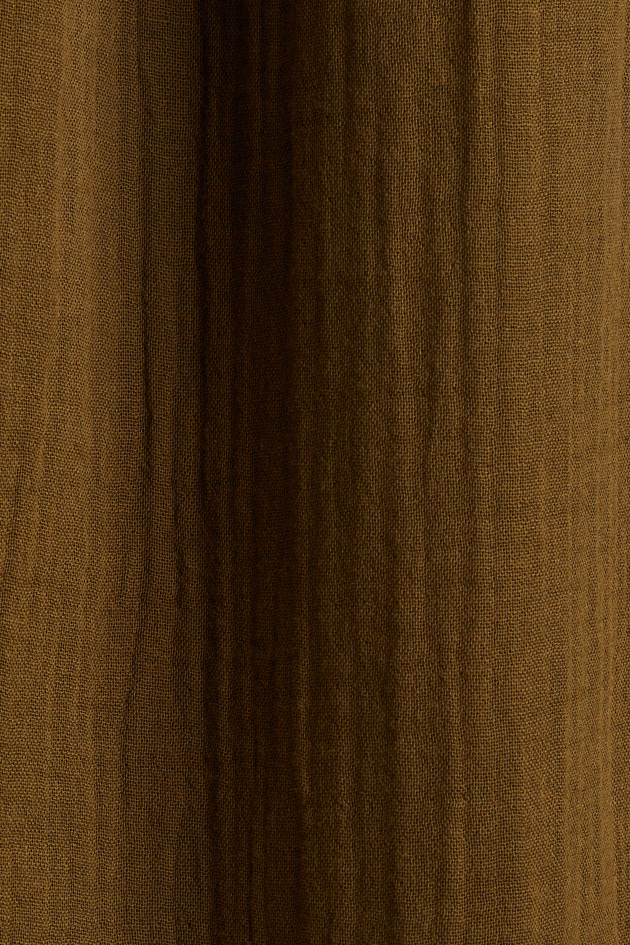 Flared, loose-fit, ankle-length dress in soft cotton muslin. Narrow, adjustable shoulder straps and a straight neckline with ruffle trim and two rows of narrow elastic. Unlined.