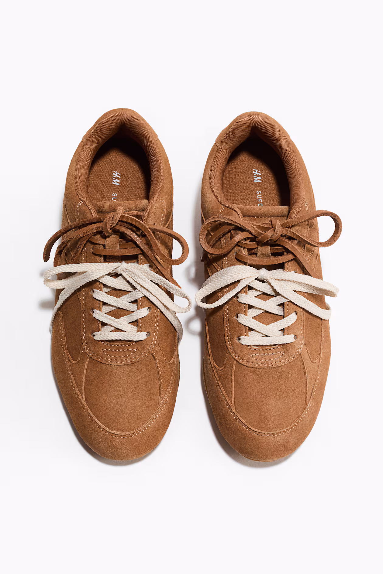 Low profile sneakers in soft suede with a padded upper edge and two sets of laces. Lining and insoles in mesh.