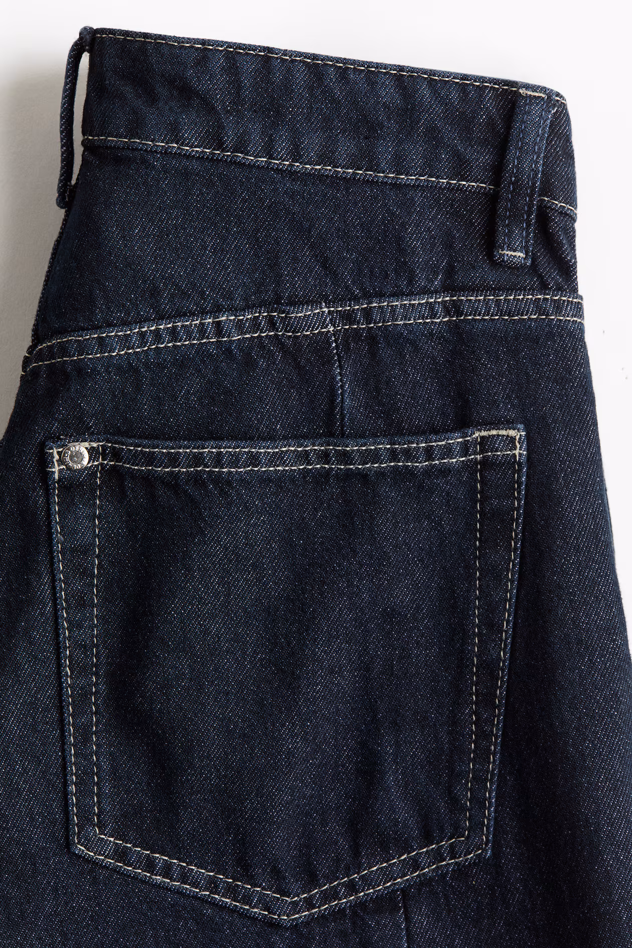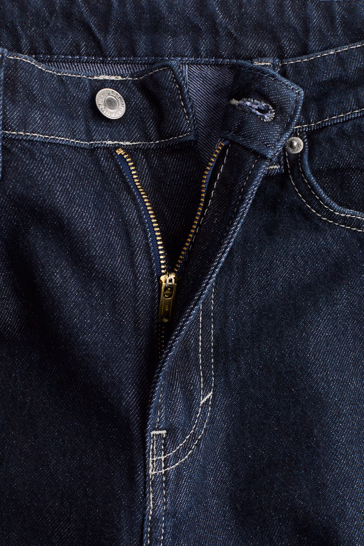 5-pocket jeans in rigid cotton denim that feels firm at first, softening and relaxing with wear. Loose fit from waist to hip and extra-wide cut from thigh to hem. High waist and zip fly with button. Wide, longer-length legs, designed to fall at foot with a stacking effect. Inspired by the 70s, designed for today.