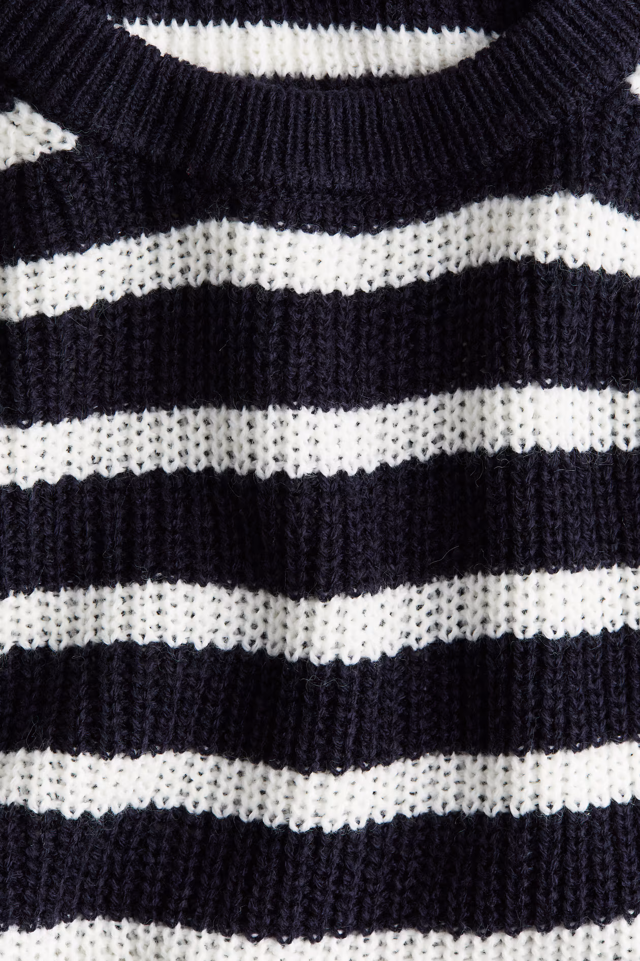 Soft, knit sweater vest with ribbing at neckline, armholes, and hem.