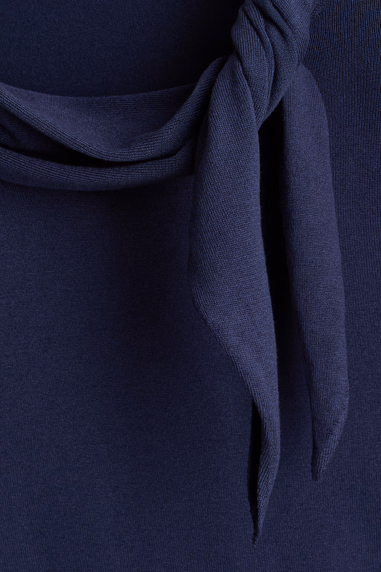 Fitted, fine-knit sweater in a viscose blend with a scarf collar. Ribbing at cuffs and hem.