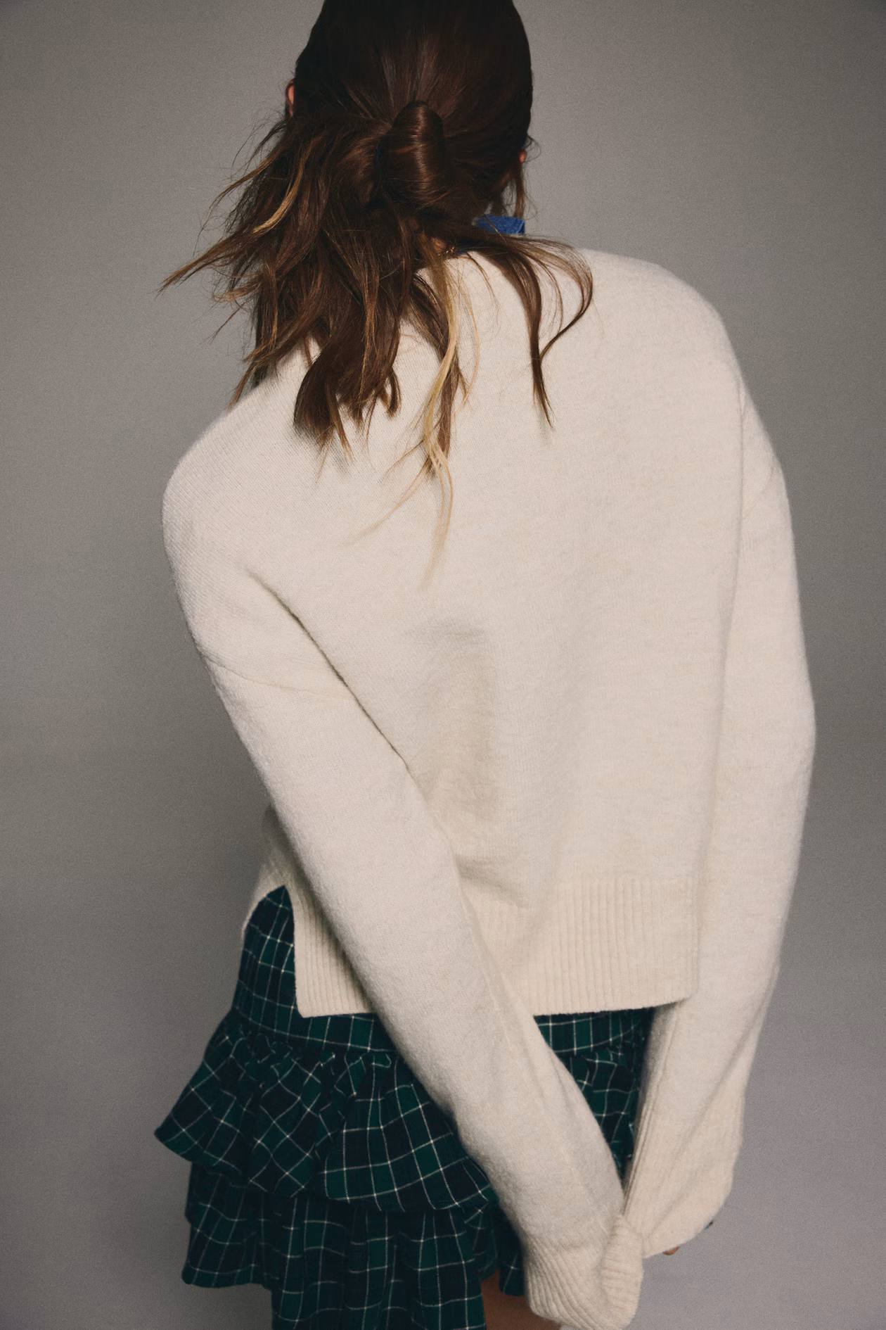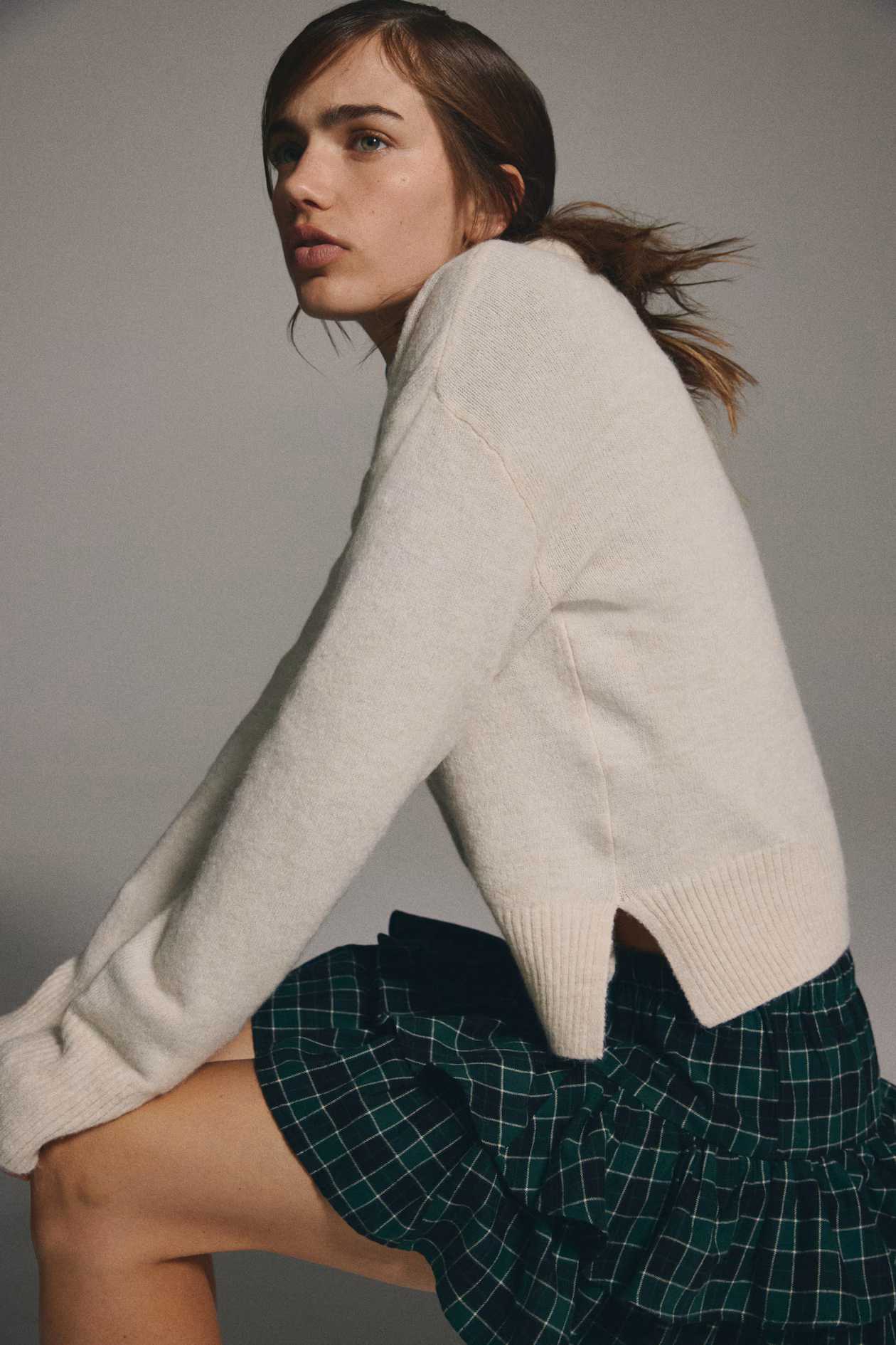 Loose-fit sweater in a soft knit with wool content. Round neckline, dropped shoulders, and long sleeves with ribbed cuffs. Ribbed hem with a short slit at sides.