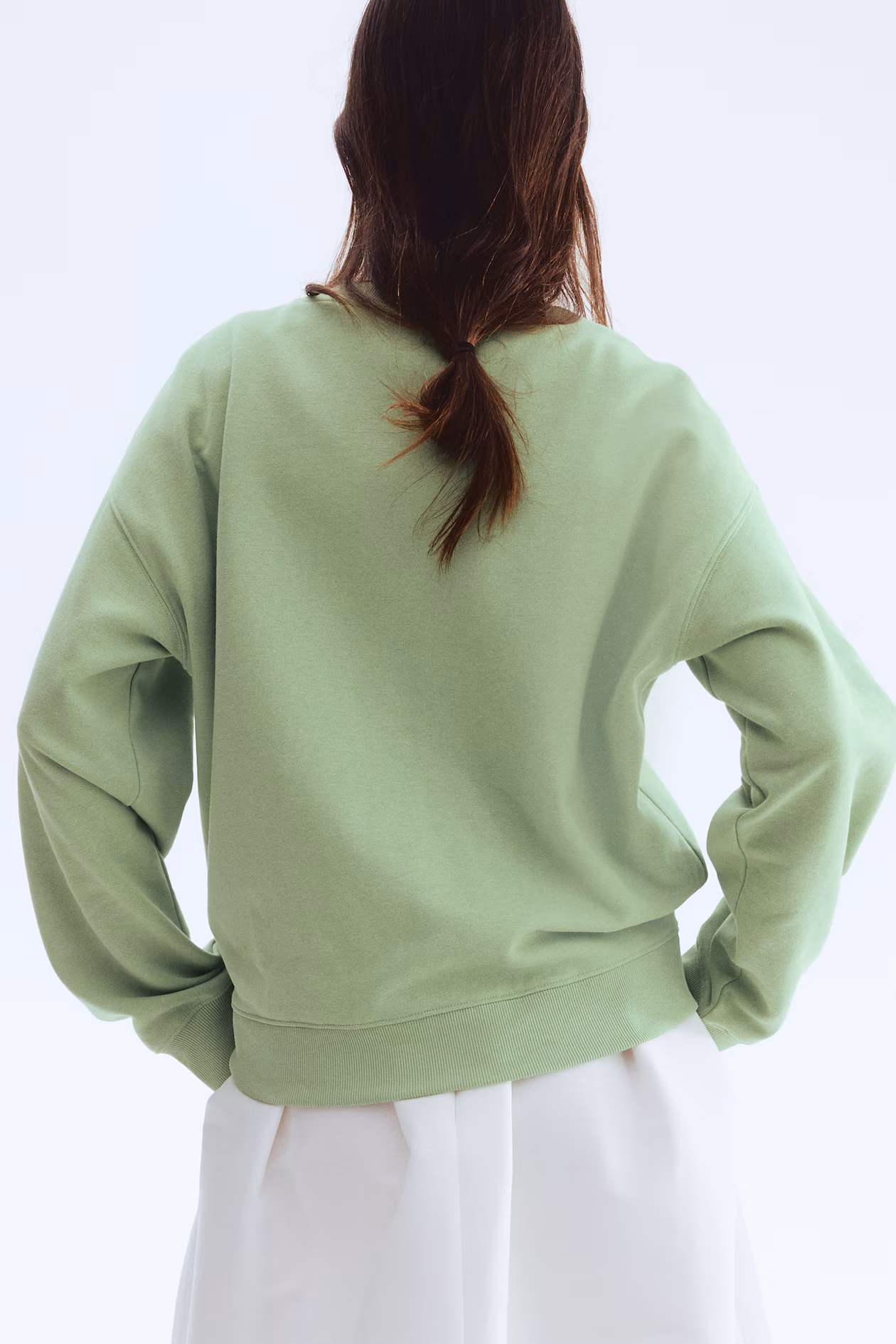 Oversized sweatshirt with a text motif at front and soft, brushed inside. Dropped shoulders, long sleeves, and ribbing at neckline, cuffs, and hem.