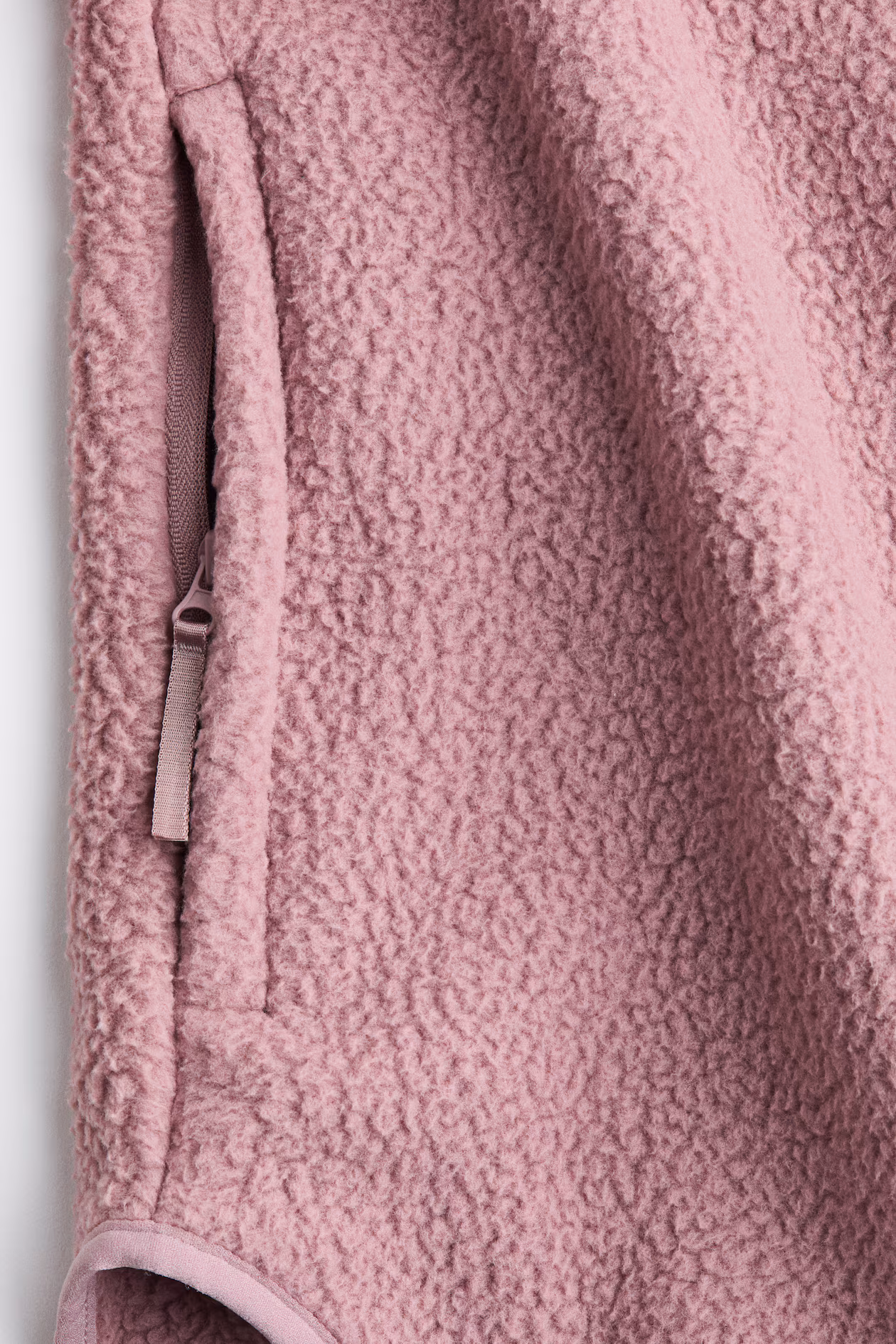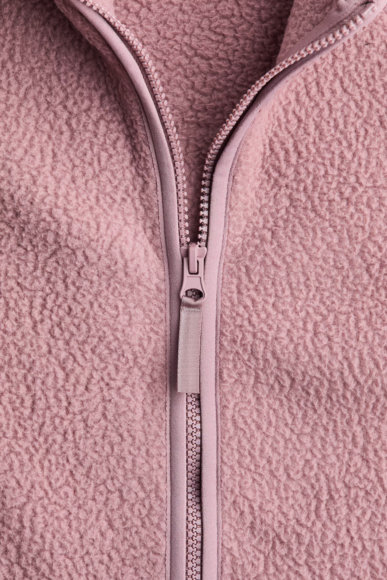 Regular-fit activewear jacket in soft, warm teddy fleece. Stand-up collar, zipper at front, and handwarmer pockets at sides with zipper. Extra-long raglan sleeves with thumbholes, elasticized binding at cuffs and hem, and a rounded hem, longer at back.