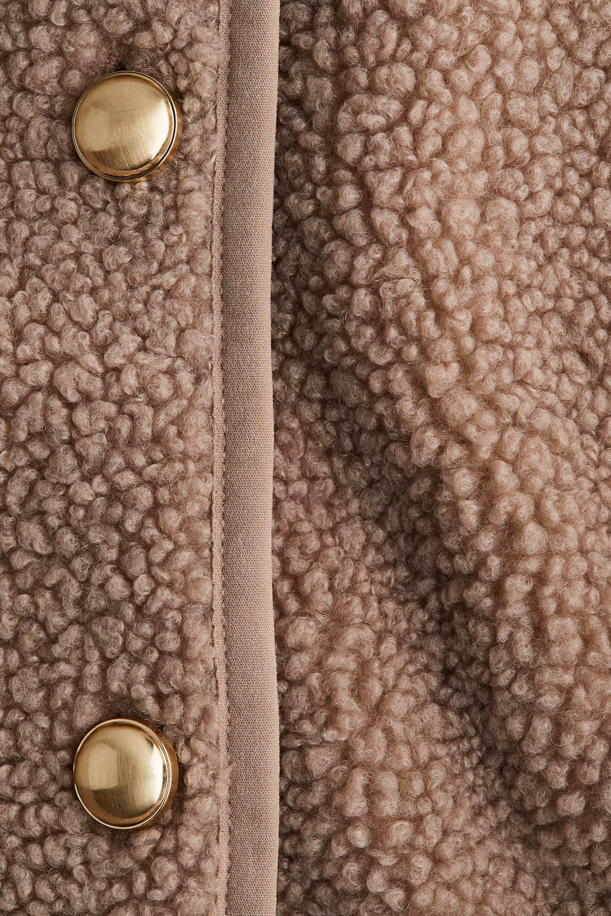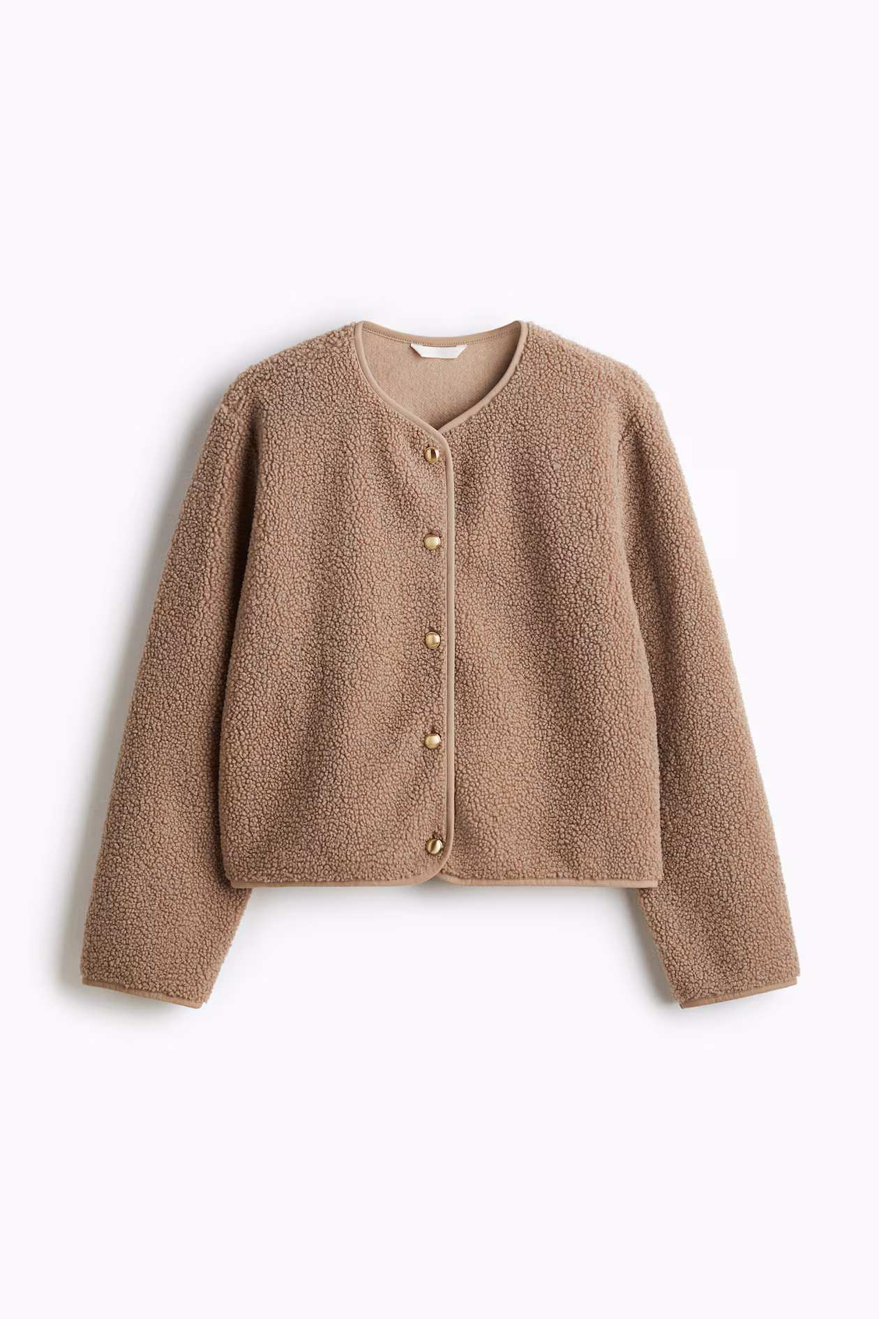 Loose-fit jacket in soft teddy fleece with narrow binding. Round neckline and metal buttons at front. Unlined.