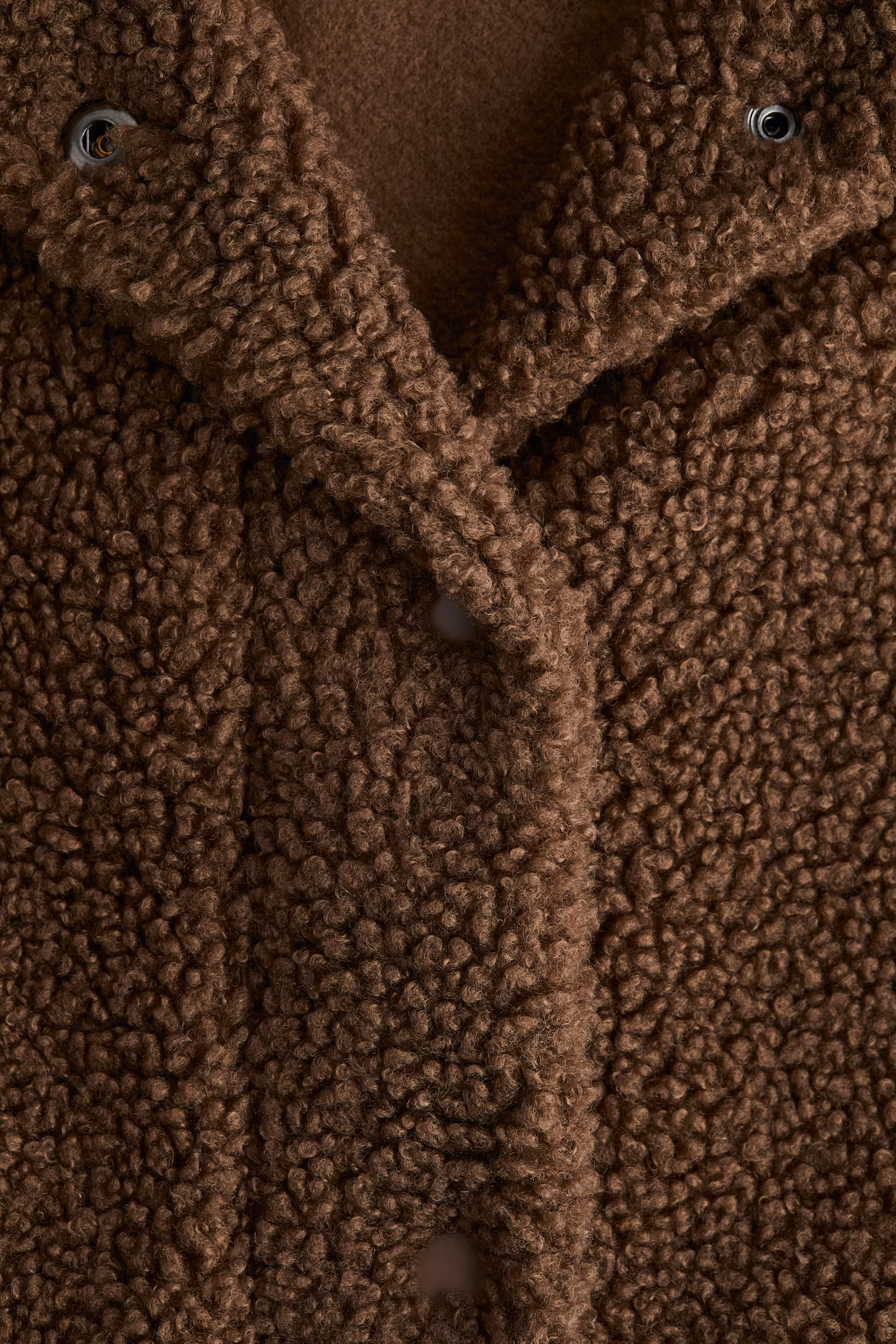 Jacket in soft teddy fleece. High collar, concealed zipper at front, dropped shoulders, and welt side pockets. Lined.