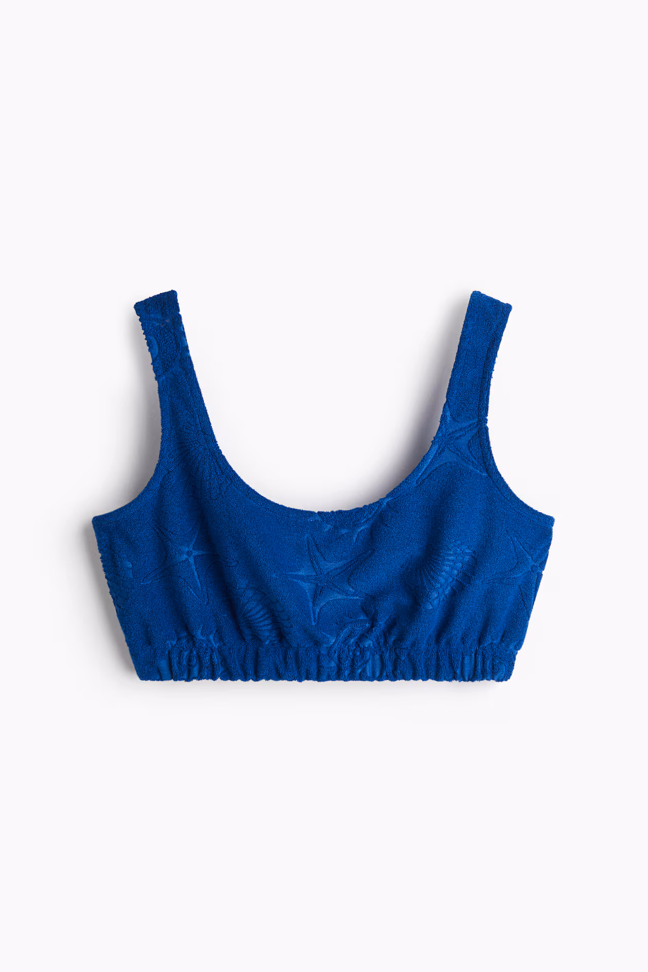Crop top in soft terry with wide shoulder straps. Covered elastic at lower edge.