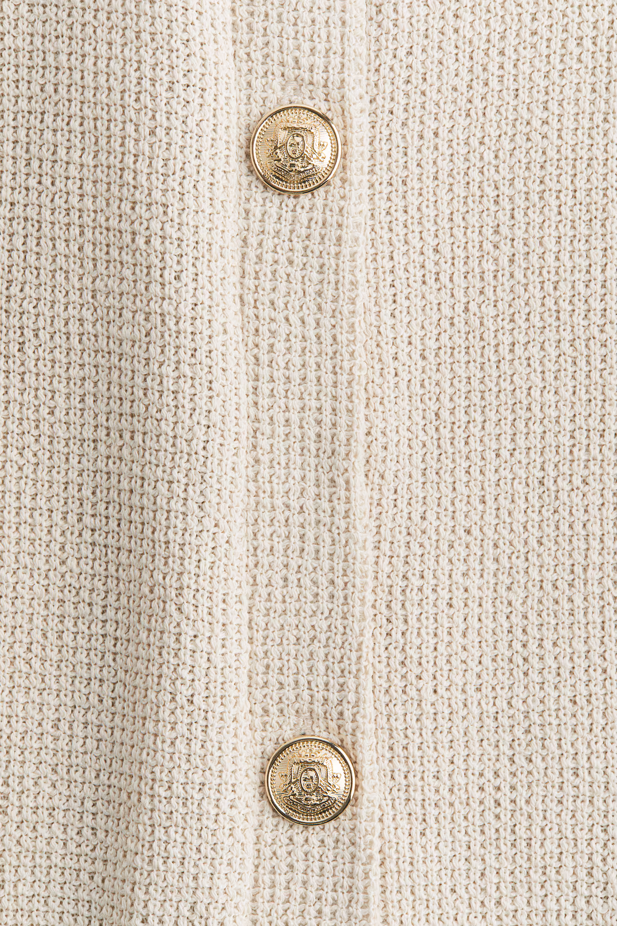 Cardigan in textured jersey. Round neckline, shimmery metallic buttons at front, and long sleeves.