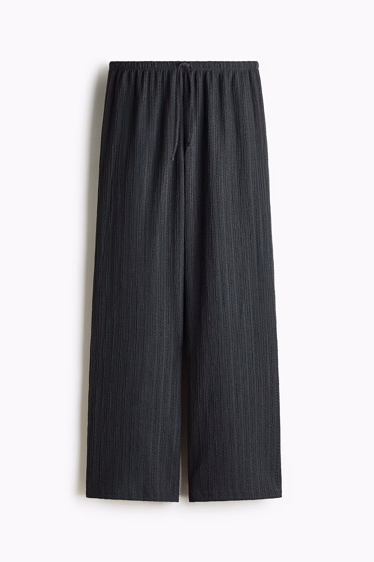 Loose-fit pants in textured jersey. Elasticized, drawstring waistband and wide legs.