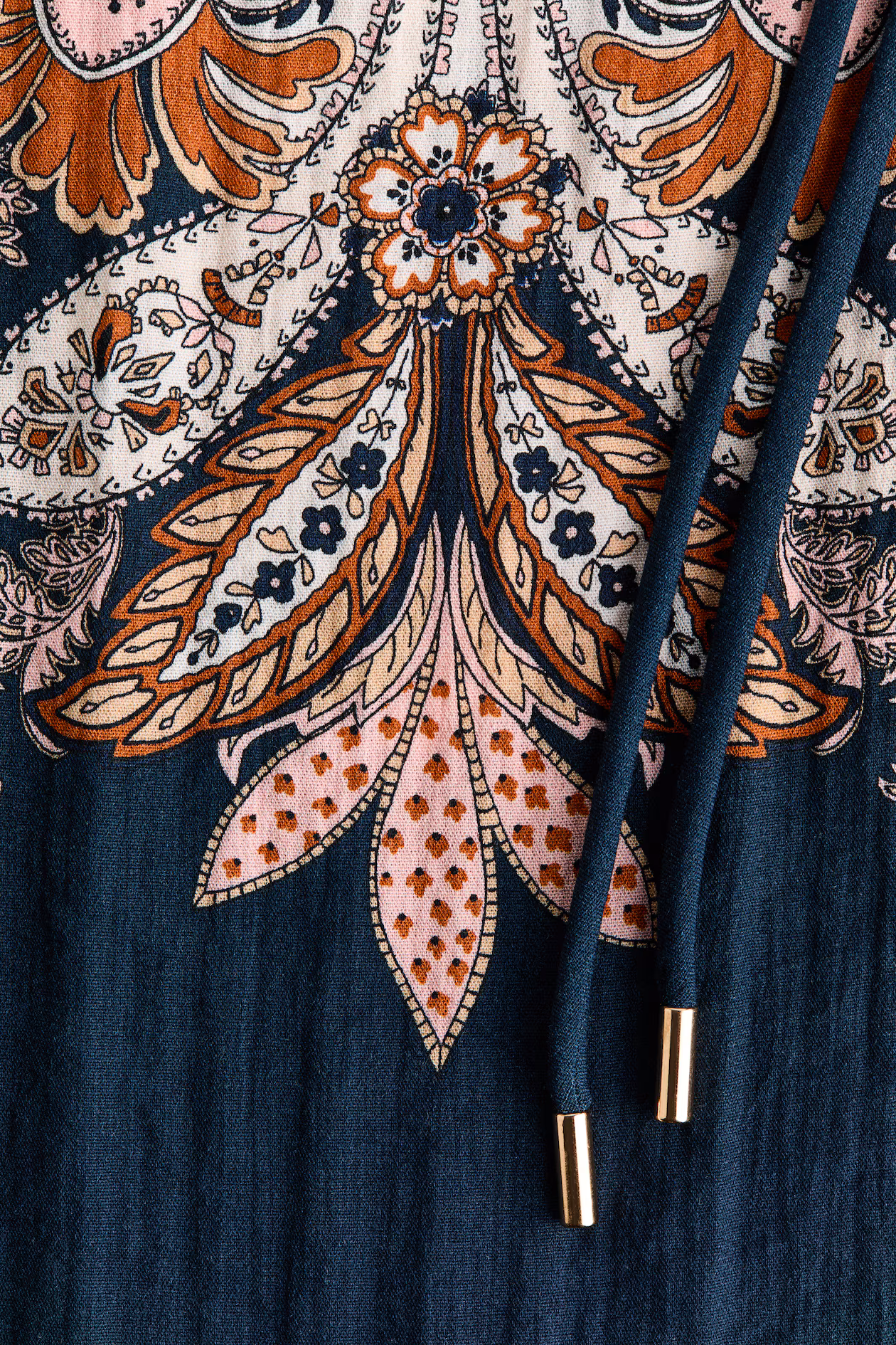 - Dark blue/dark orange/pink/beige/white, Paisley-patterned