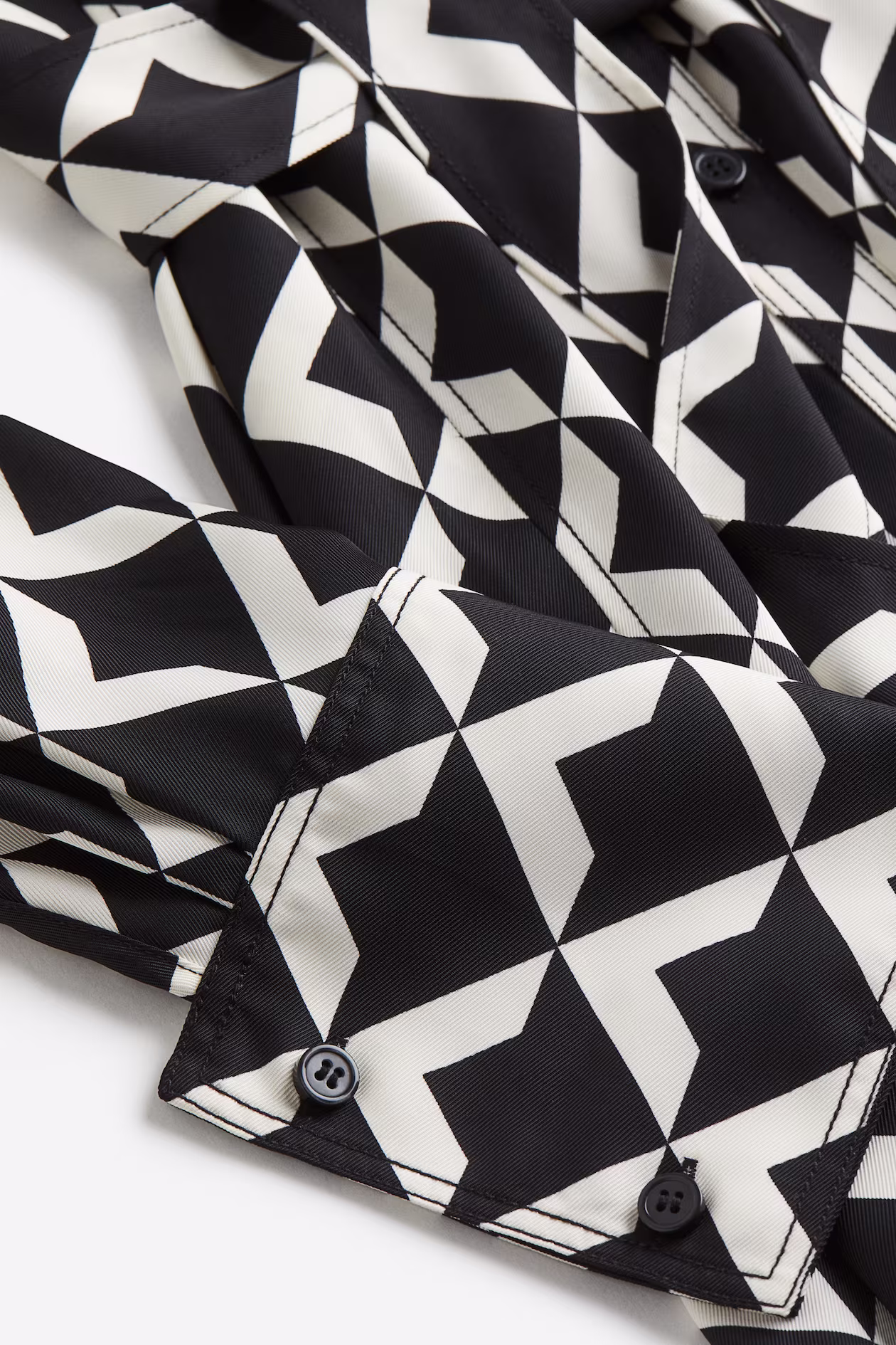 Loose-fit, calf-length dress in woven fabric with a removable tie belt. Collar, buttons at front, long sleeves, and wide cuffs with buttons. Unlined.