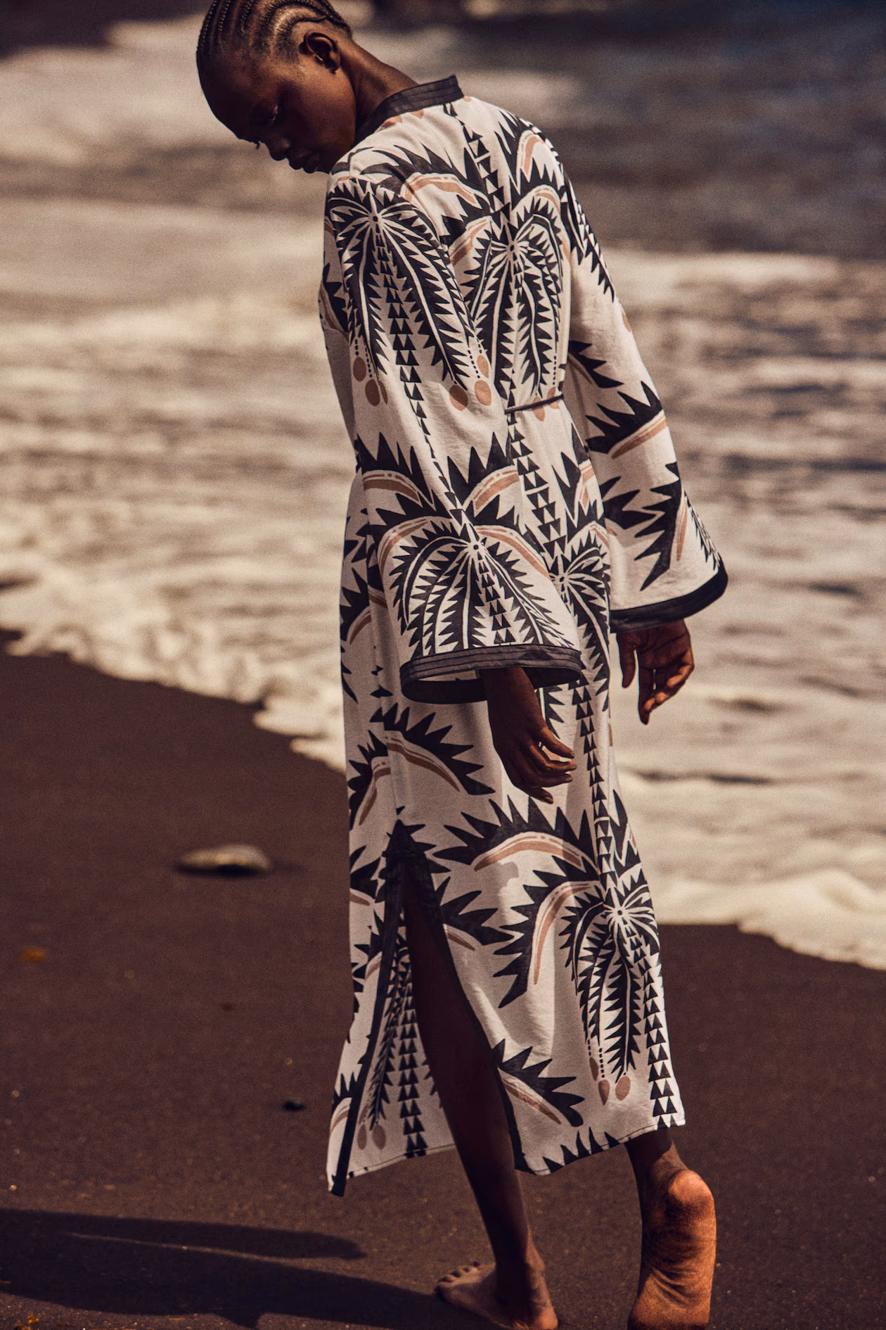 - White/black/beige, Patterned, Palm trees